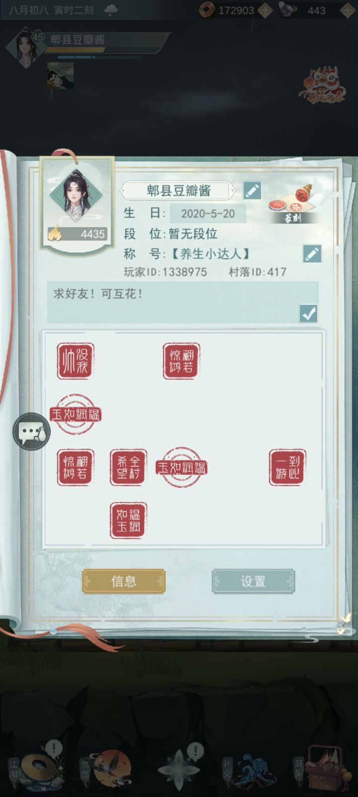 QQ微信都一样,1337226482 游戏ID罪歌 387952 村子ID1958风雨十年(大佬比较多奖励也比较多但是比较冷清)