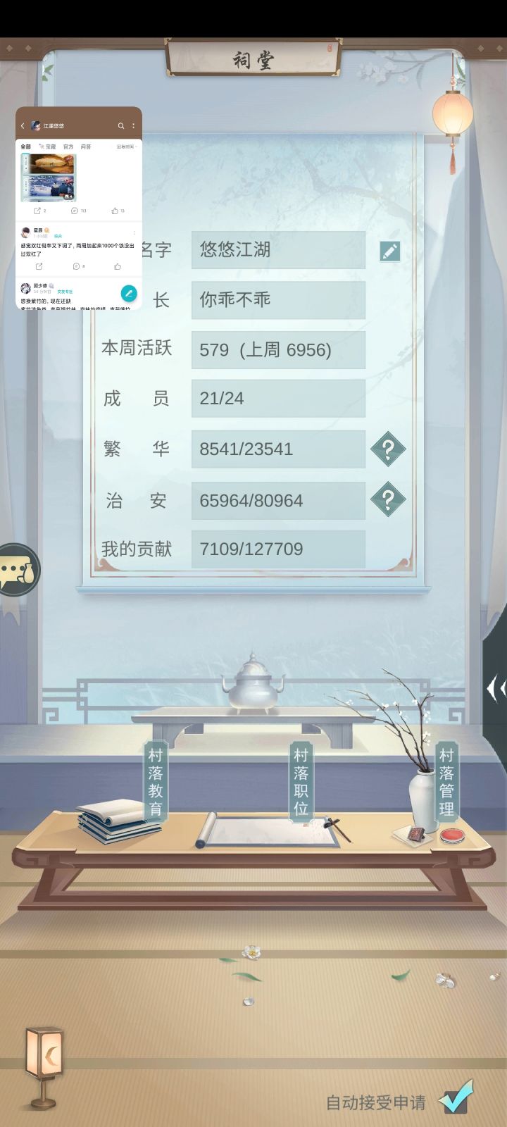 满级村落955招贤纳士,除了棋子分配,其它物品,包括承包产业都要拼手速,周贡稳定6000+,欢迎各位大侠加盟!