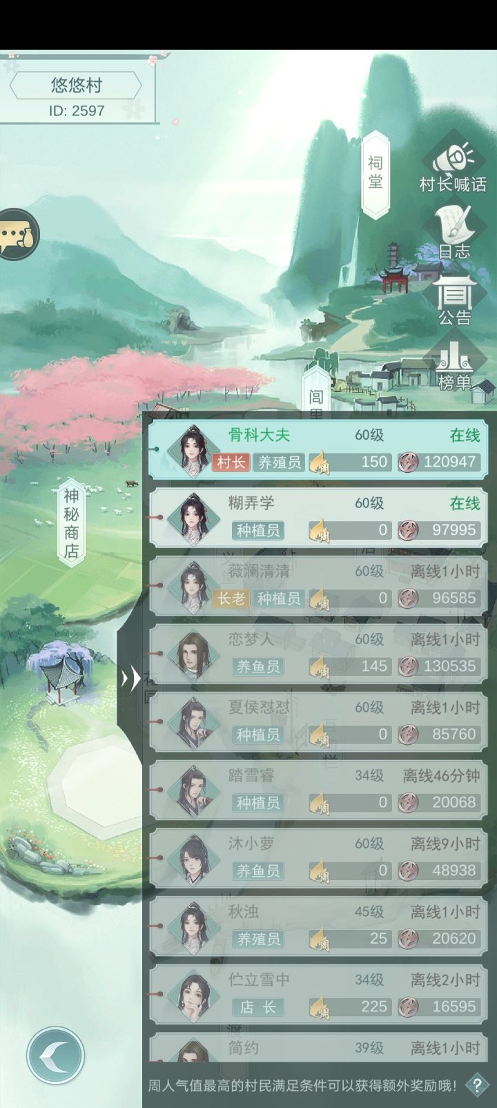 id2597,满级村招咸鱼,萌新,有没有活人啊!还有人玩吗