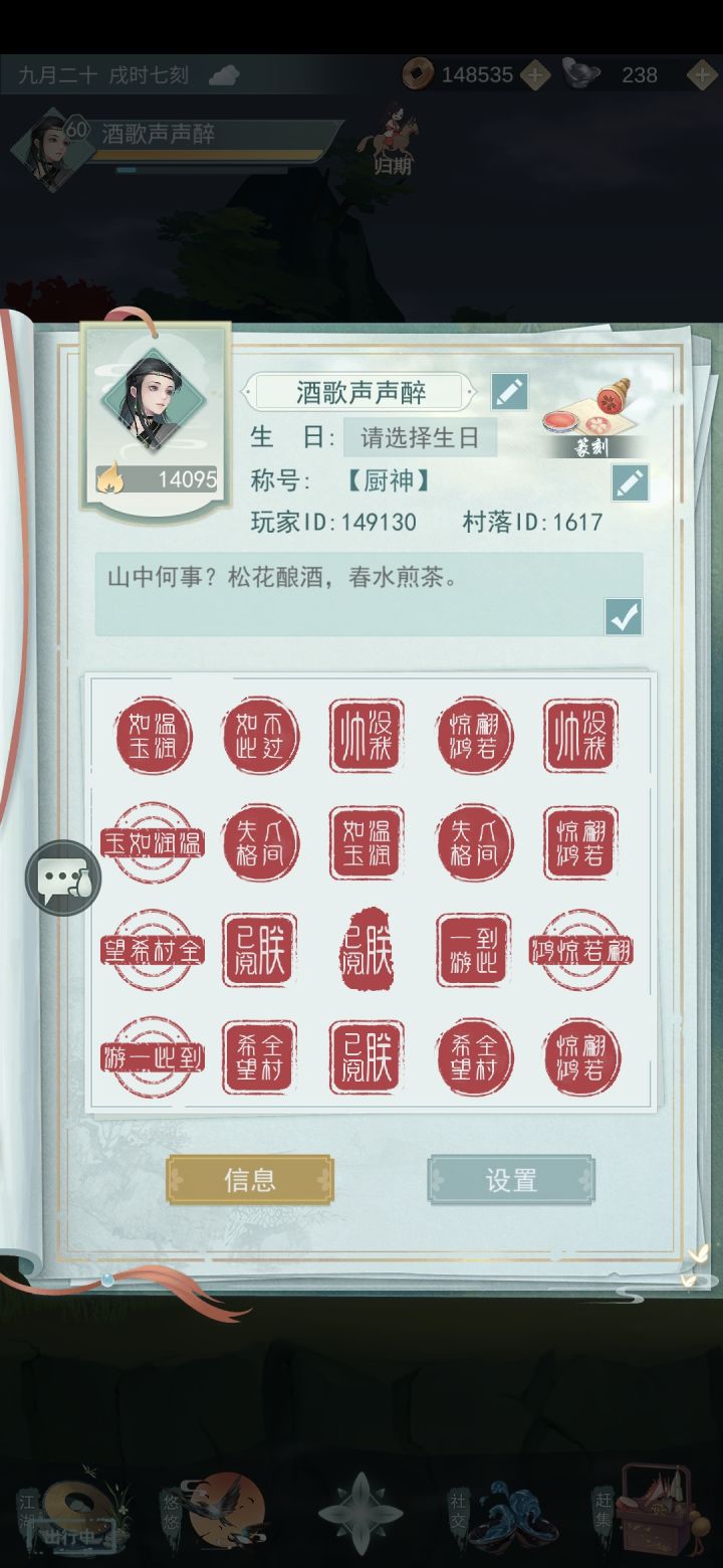 村落4804,紫水栈桥,招收几位小伙伴。目前所有科技均已满级。目前村民还算比较活跃大多基本每天都上线,话痨有几个想唠嗑可以唠(虽然现在新版本开后没有以前那么活跃了),气氛也比较和谐,大部分时候互助可以完成,也有几个人每天发驱匪求助给其他人送钱。聚义堂上星期村落安全度4601,结算村民分红720。不考虑自身承包贡献分红情况下,大约有1100-1600的其他村落承包分红算上聚义合计1800-230