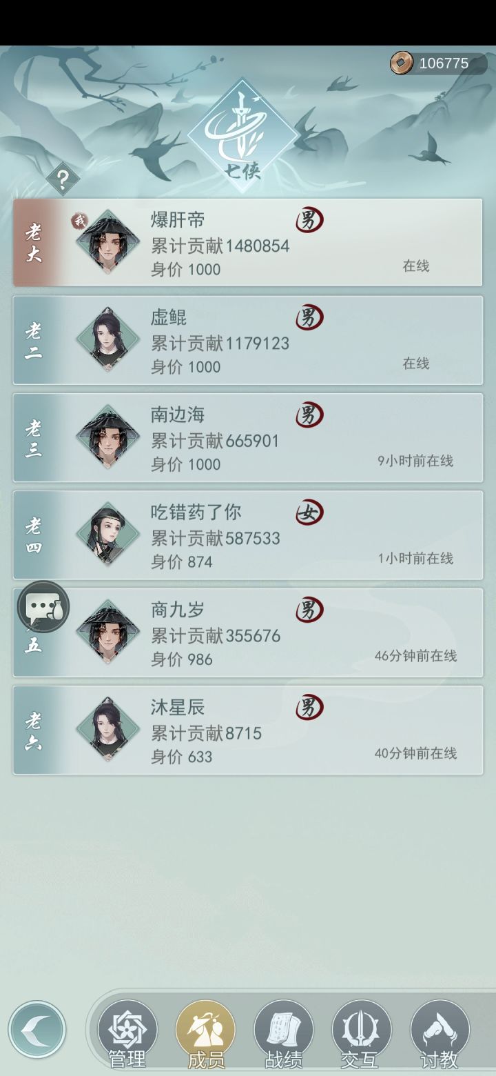 本人男,天信,学历五六混,要求女方问酒或者天信,学历全六阶。(水花,锁月勿扰,婚后处不来。)其次要求女方六把以上满级锻造武器,双红不能低于8个,绝对不能有蓝绿词条,不然娶你我嫌面子挂不住。若满足问剑每周稳定前八名、满级村村长、知名人士条件之一的,优先考虑。有意者加我,非诚勿扰。
