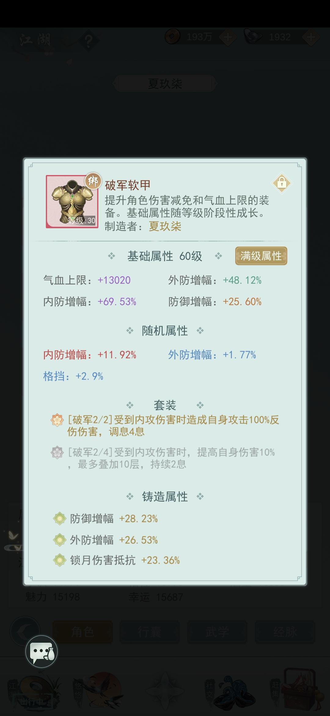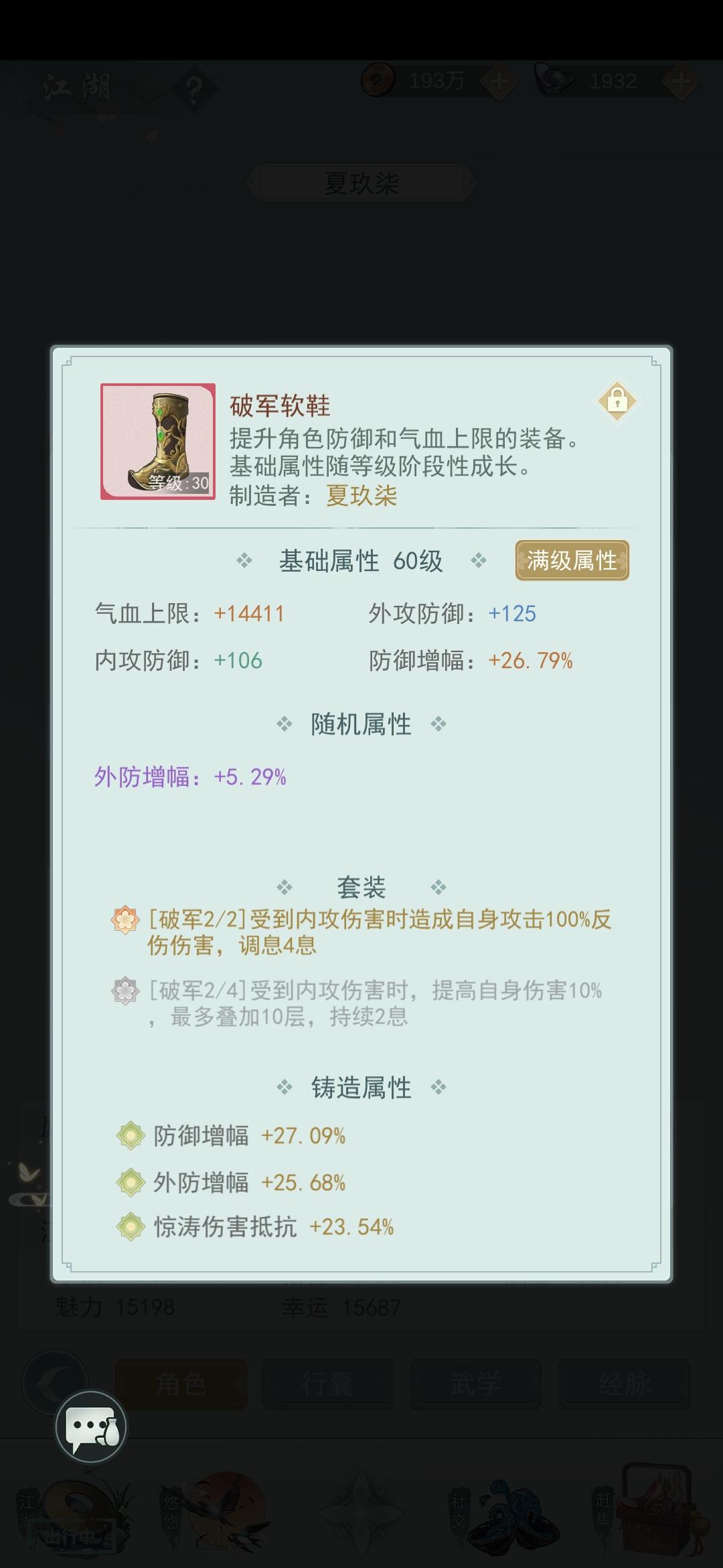 39级对47级,武器没开封,武学最多的四阶,光阴1阶,速度够快,暴击和控制也足够,就是反刃有点鸡肋,作用不大,个人感觉换折膝可能会好点,下一步准备试验,毕竟限制行动力的,平民我觉得用这套完全没问题,大佬请忽略,pve,pvp都够用,只要不是氪佬都可以拼一把,当然武学和等级差距不能太大,希望噴轻点,个人心得,分享一下而已!就这点东西