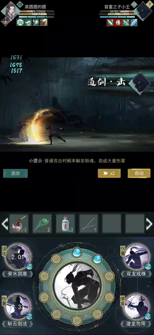 昆吾戳戳戳剑法。 自动:没设置随便放的
