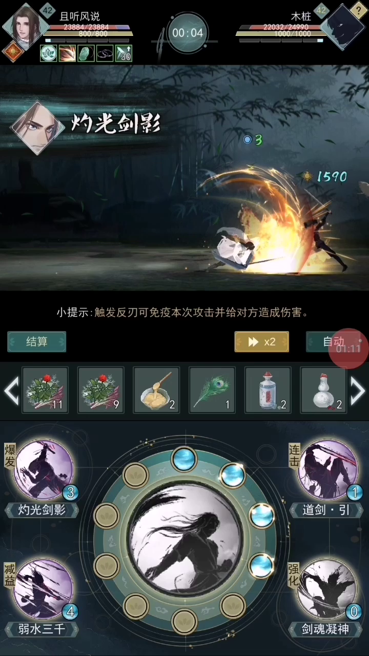 开头3个灼光主要是为了攒50层被动,毕竟木桩不会打我叠被动,实战除非对面是重剑,否则一般不需要用灼光。 或者可以把灼光换成叹息之壁,挡掉对面破定来活到第五回合。 我个人喜欢带问酒招架减伤,叹息之壁防破定。 剑洗负伤,破腕,破刃,反刃。 连招关键是在第四回合后有80层被动,并且第二个道剑打出负伤。 问酒大招伤害本来就不算低,再加上高阶弱水的加伤,100层被动的加伤,负伤的加伤,之后的弱水加剑魂也很可观。