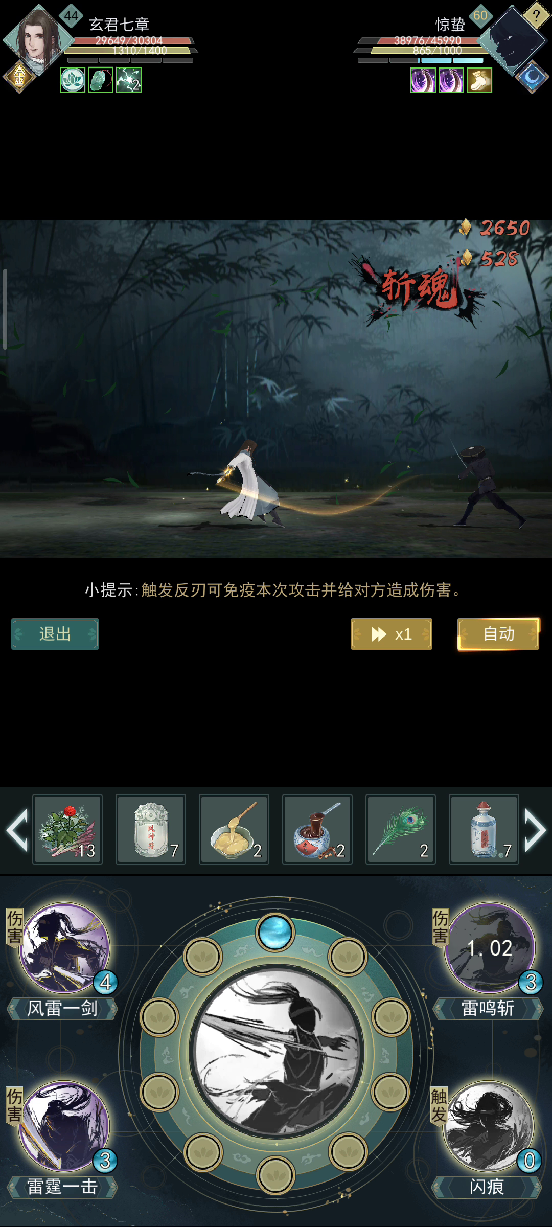 我换成和这位朋友一样的装备,打了很多次。我感觉还是无痕稳一点.....🙃剑重单次伤害确实是高一些,但是无痕它出手快呀。四舍五入还是无痕好用...无锋最大的毛病就是:被蛇刃克、潜龙被反就完蛋,被破刃也难受...