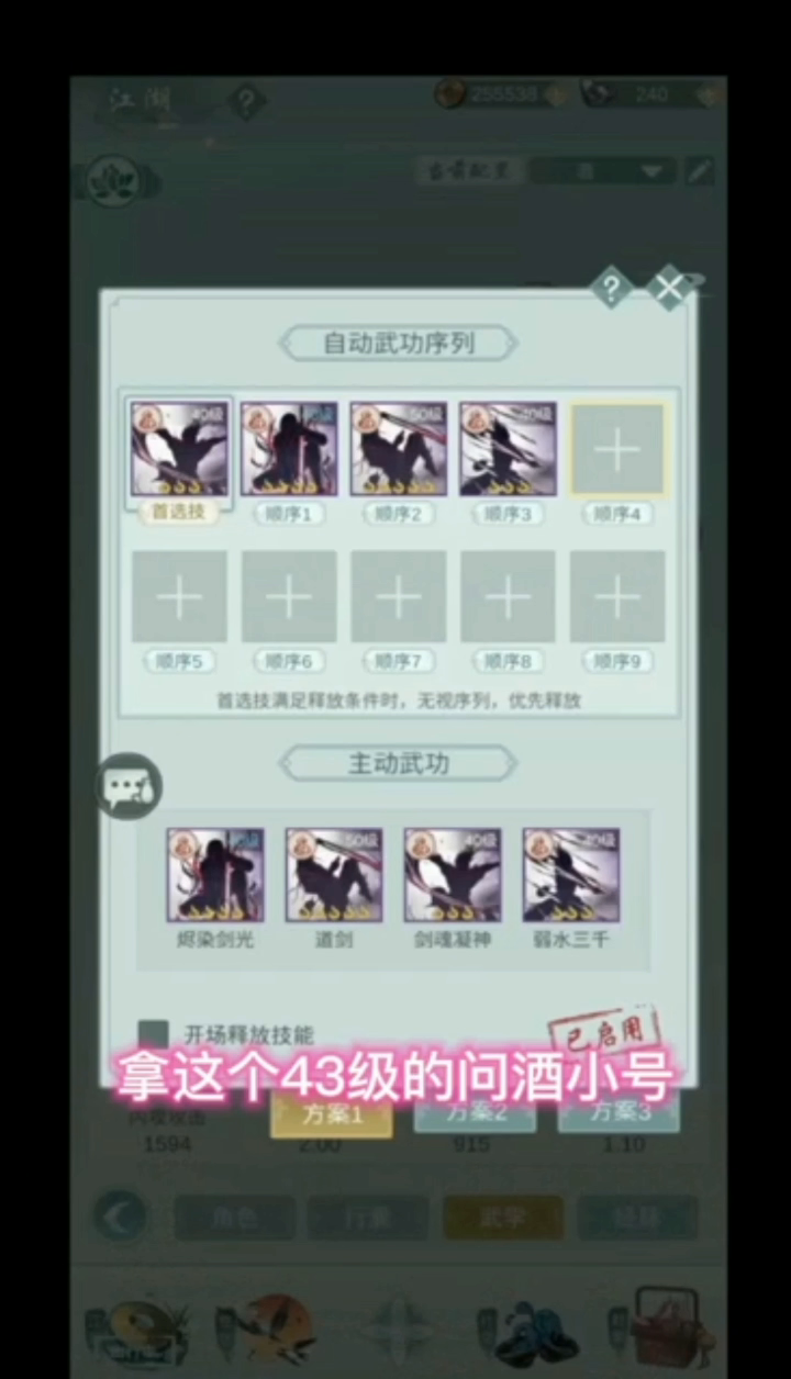 江湖悠悠,问酒武学顺序