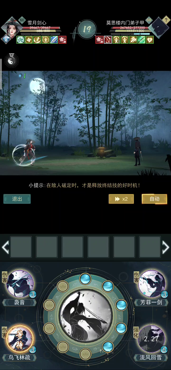 我就想问问秋水被动的概率,录了两分钟,触发了两次。 还有鸟飞的概率,录了两分钟,也触发了两次。 还有妖灵反破断刃概率,录了两分钟,两回合全挂满。 秋水莫思,秋水三全红反刃10.13%,莫思五个六三个五鸟飞六阶,经脉反刃洗满。