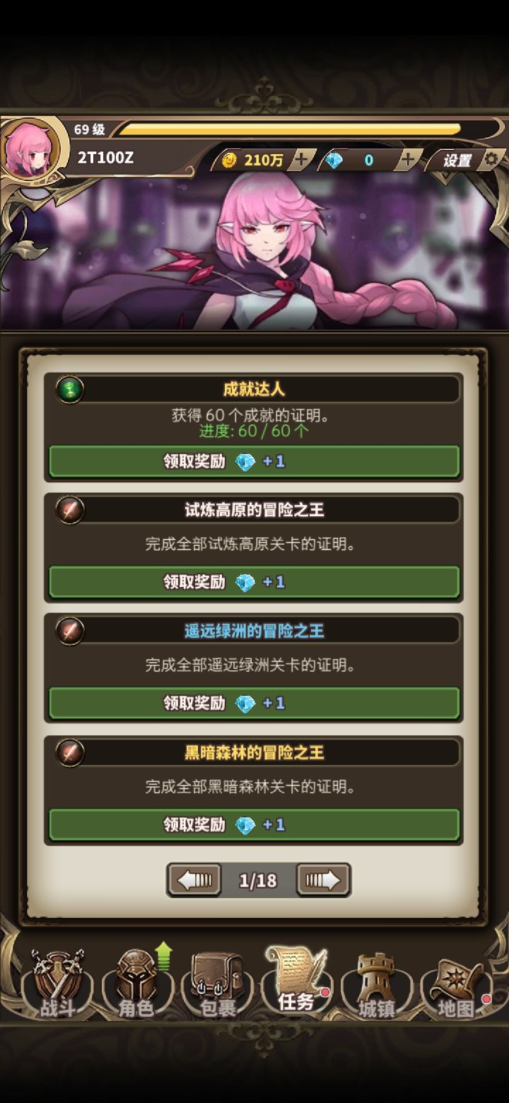 本人也是前几天才入坑,也是萌新一枚。这个攻略仅供入坑萌新学习如何打好基础,为以后练大号做好铺垫,大佬级别请忽略。欢迎讨论但是不要杠精,有不对的地方还请指正我四五天前接触这个游戏,目前只花了6个大洋买了一只粉毛首先给大家计算一下95钻都是哪凑来的,上图成就钻石:到此为止,加上下面没完成的,一共是73钻————————————————————————————————通关奖励:通到69级boss