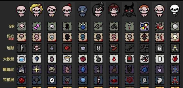 一共20页 一页24个 240种道具 switch以撒的结合胎衣+