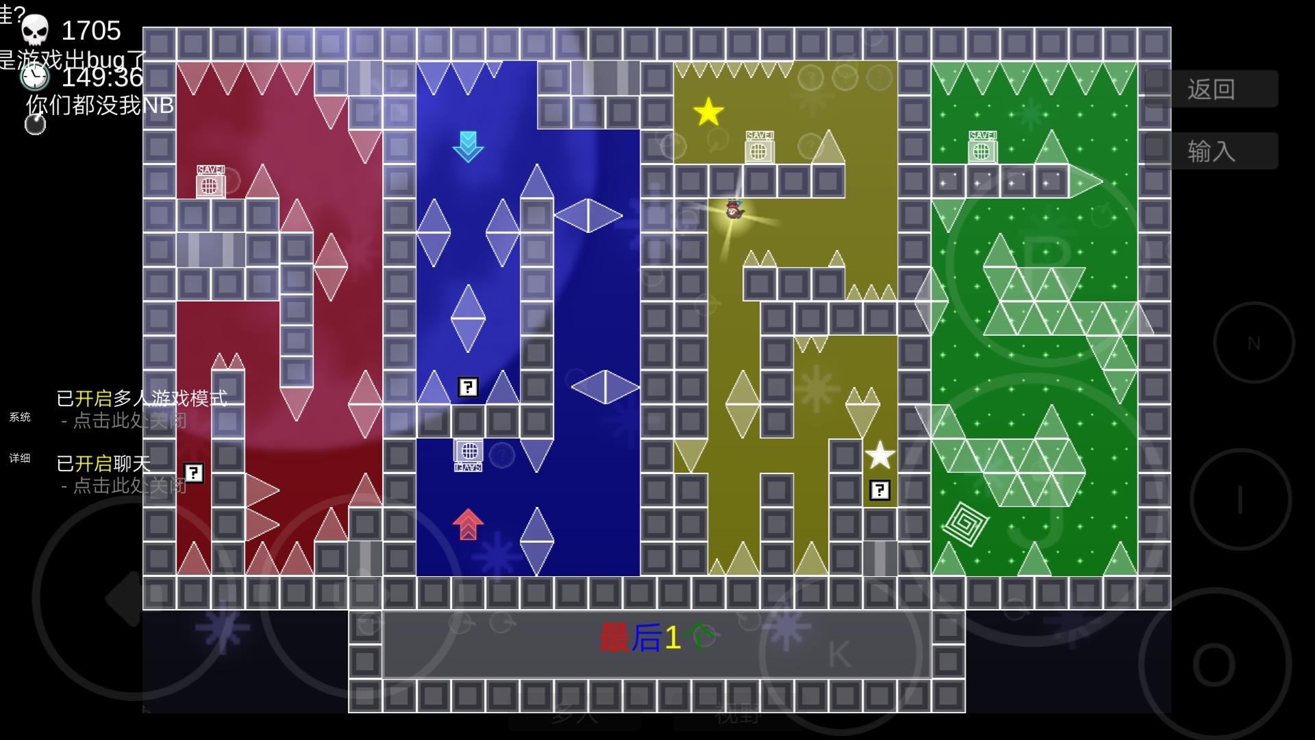 不知道有人跟我一样么?就是有时玩一个i wanna 的时候按到回主屏建退出以后再回来发现这次玩的存档进度都没了,甚至有时候就是玩到一半休息一下结果回来以后发现从这次玩起的存档记录都没了……我不知道这个是bug还是我手机的问题……但就是挺烦的,比如说好不容易一个难点玩过去了结果一回来发现又要重打……就很头秃。以及我在另一个(苹果手机)上下载了taptap社区,为什么用它找不到下载界面了?