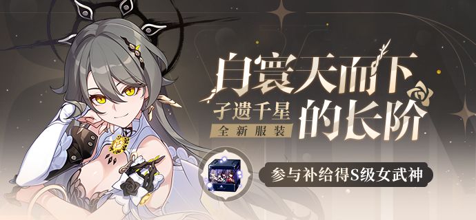 即使时光流逝,我心中的比安卡还是这副模样。=====「光绽天霄」角色补给=====「光绽天霄」角色补给开启,S级角色「天光驰彻」、A级角色「圣女祈祷」开放获取,「天光驰彻」、「圣女祈祷」获取概率提升。同时,舰长参与本期该角色补给时首次十连五折。「天光驰彻」简介:受「升变之理」庇护的虚数属性物理伤害角色,使用梭镖进行战斗,可在肆野模式与驰空模式之间切换,作为队长开启星环爆发时可释放强化入场技能