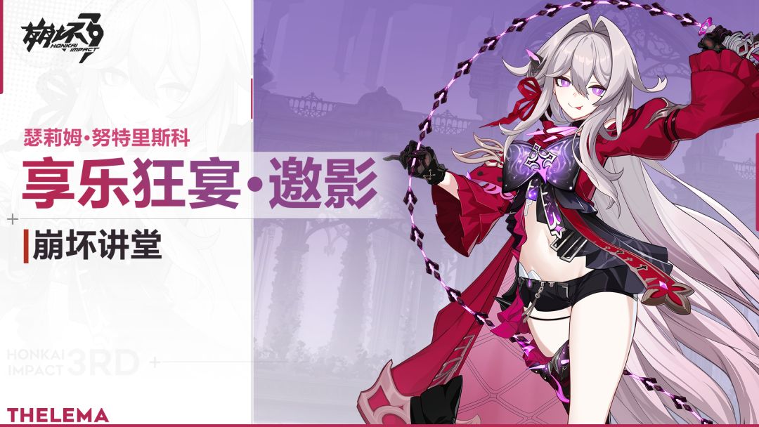 《崩坏3》7.5版本「伐罪逐影」即将开启!全新S级角色「破弃孤光·逐影」登场! 还有主线第二部第三章「事先张扬的犯罪」、主题活动「夜光逐影」来袭,敬请期待! 配音演员: 「灯」—— 潘丹妮 白及—— 林景 「?」—— █ █