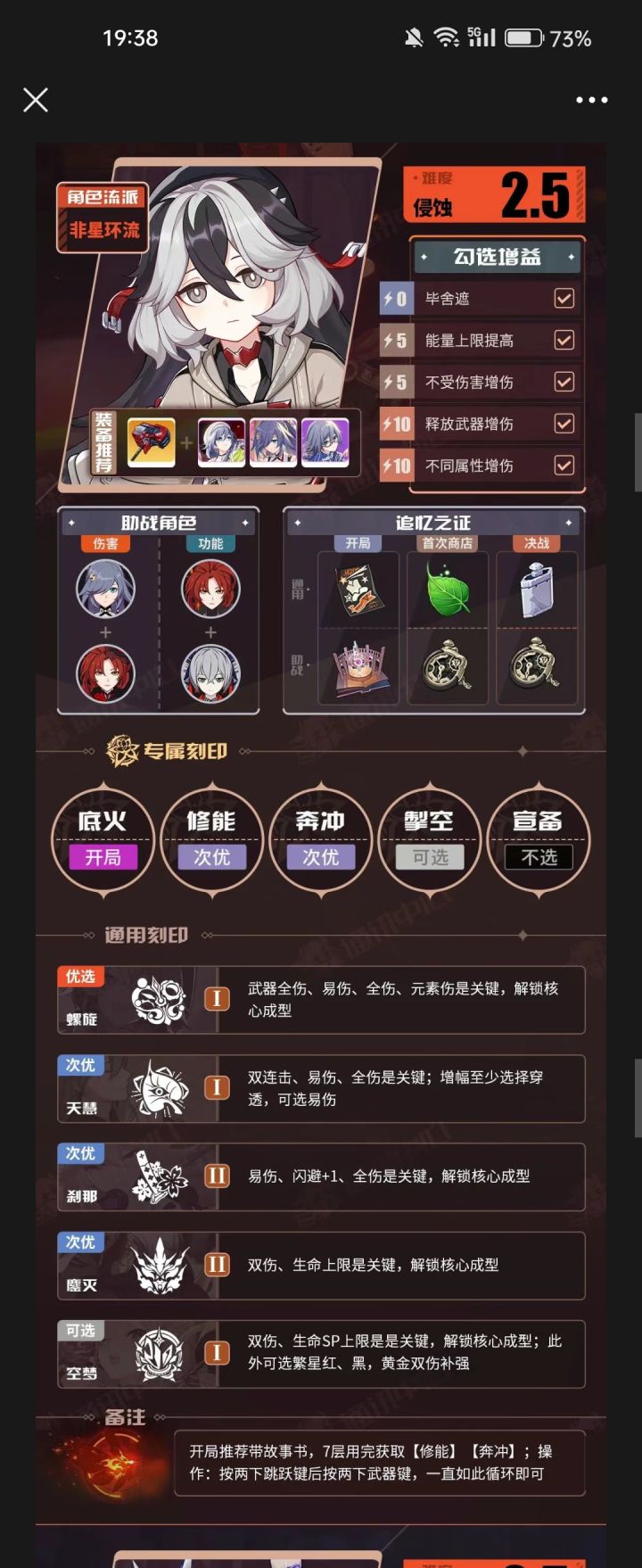 区域天气:黯灭区域效果:非【星环爆发】状态期间全队角色造成的全伤害提高15%,星之环系统未激活时,全队角色造成的全伤害额外提高50%高危区推荐主C:死生之律者 通关流程演示:更多作业素材可在作业中心或游戏内攻略站精选推荐中查询,啾咪~