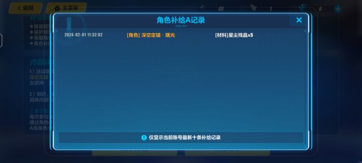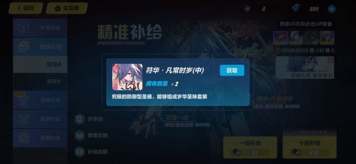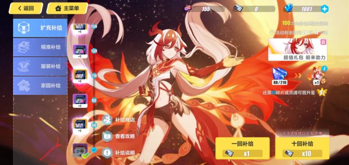 崩坏三第二部更新,之前预告时候就对这个角色特别的有好感,特别想抽。于是等更新完事之后进领了下邮箱里的水晶,下池子!之前是累计一百发内出金,抽了十发就是九十发内出,现在改成了九十发内那就是八十发内出。当时也没想啥直接就单抽了,然后第一发就出了。直接就人傻了,还以为是版本更新之后必出但后来看了下说明好像还不是,而且我之前才抽了十发也不够数,但还没太看懂说明。要是说第一发必出那就没啥,要不是的话那就