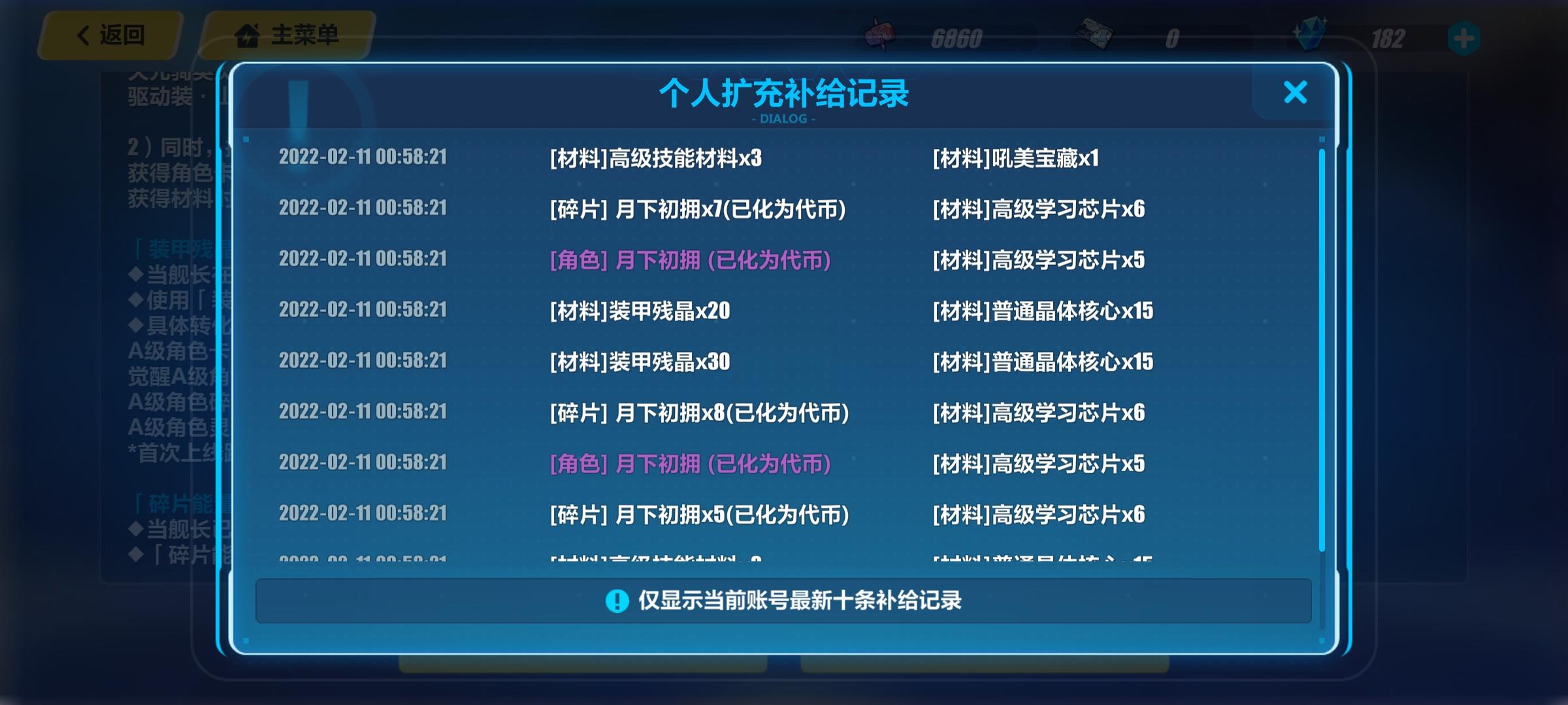 真离谱!一发登录白嫖的扩充补给卡中了识律???!!!之前也是,周年庆登录送的十连中了雷律,还有我在b服创的新号也用白嫖的一发单抽中了理律。