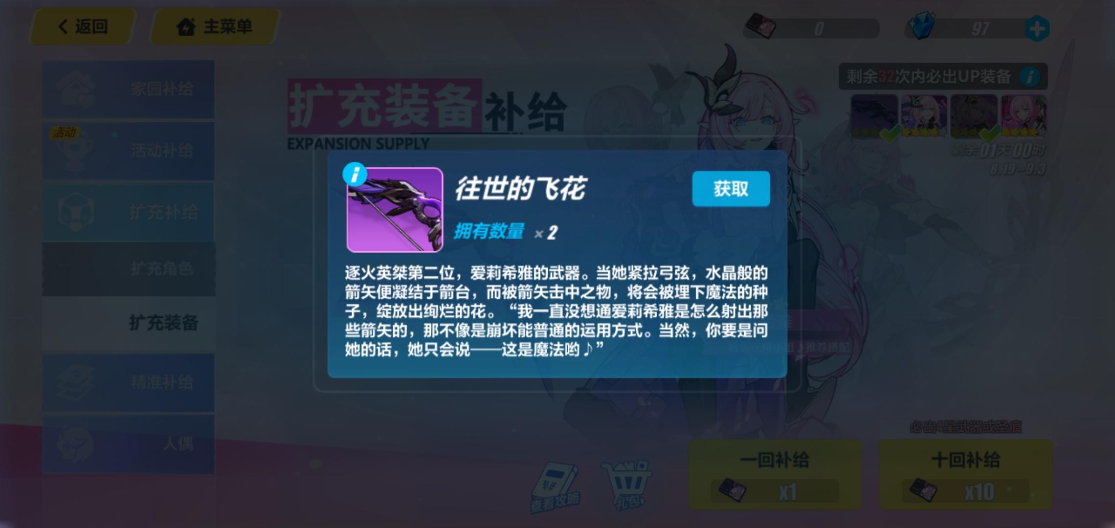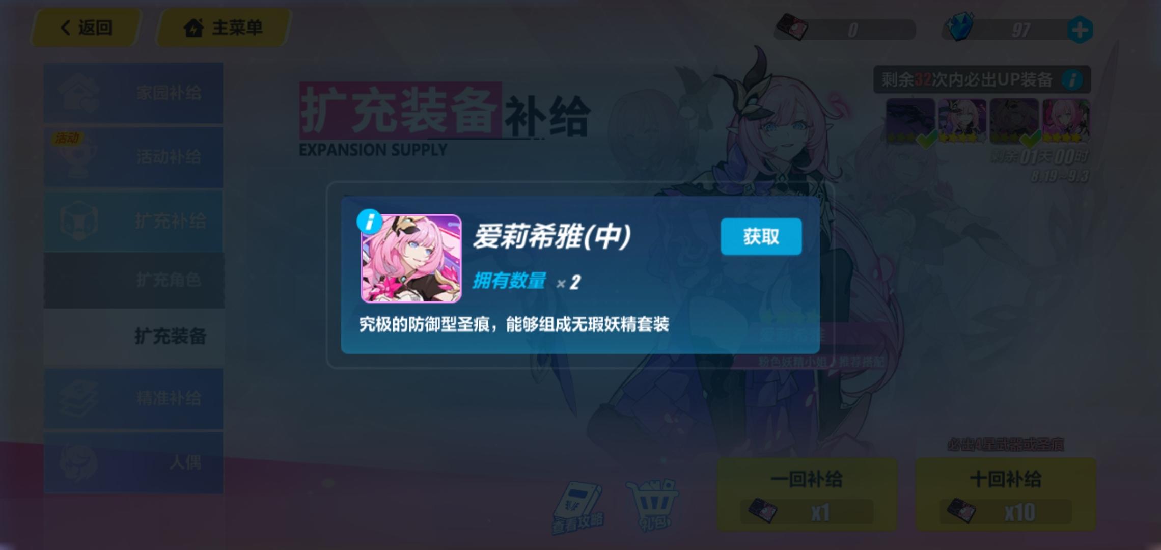 总共30抽出两个粉色妖精,几个单抽出的圣痕