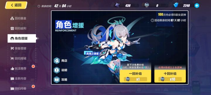 运气还不错,免费10连出了薇塔,然后又花了20抽出了月之恒,现在就差薇塔的专武了,感觉问题不大。