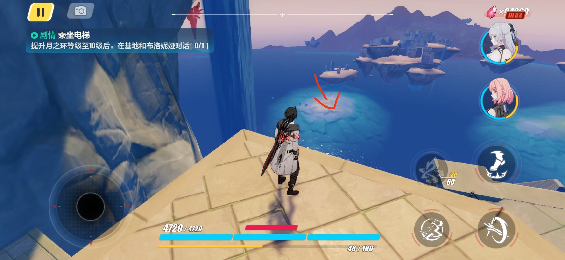 在箭头那里长按主角的普攻,不会重置到跳跃点