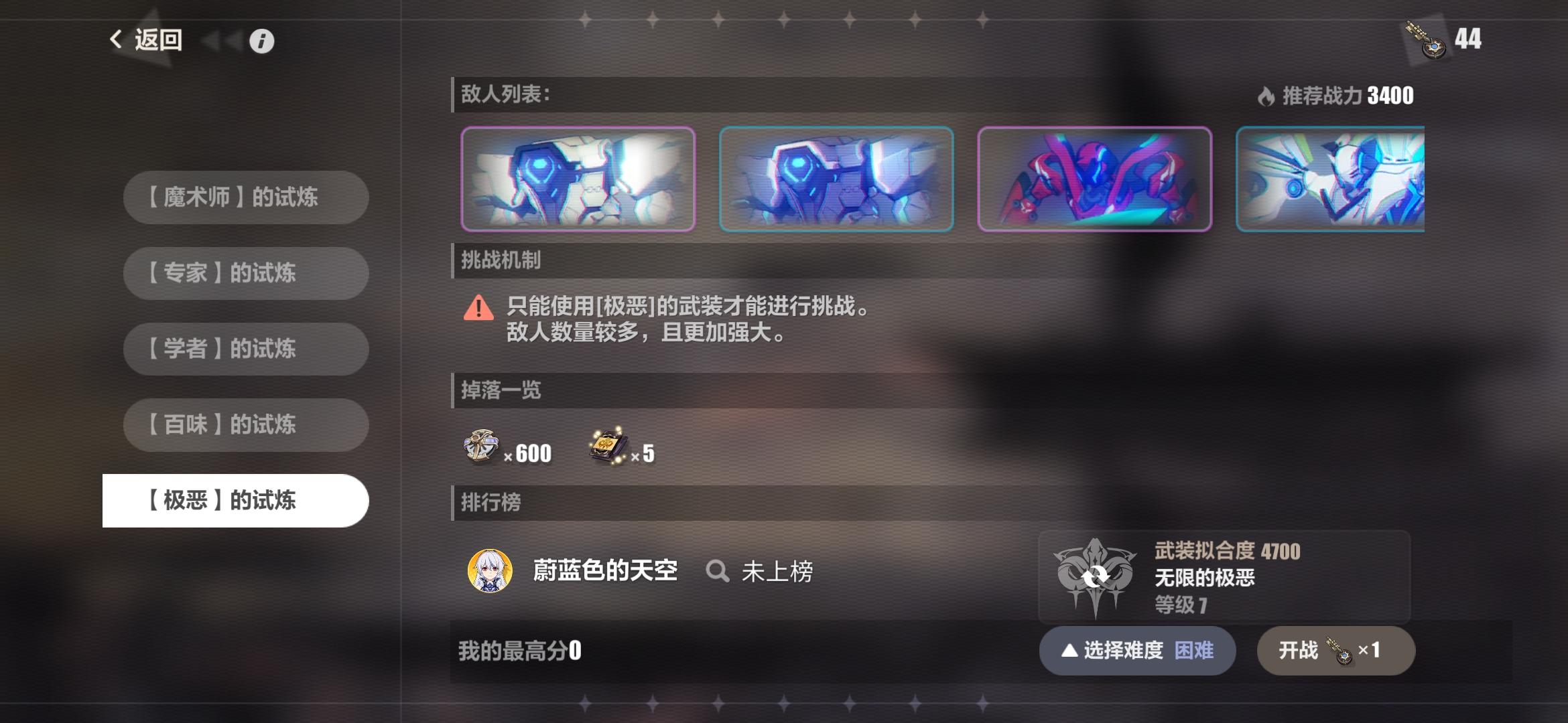 发现一个bug,打活动乐土的时候,开着二级钥匙进,在同时点击进入的同时点切换卡牌有几率卡出跳跃键(中间会卡很大一会,但是可以点任务,点不了暂停),然后(我开的极恶)怪会慢慢出来,我靠薪炎雷律出场离场技,云墨分支慢慢清怪等时间的时候,挑战结束和灭火器一起出来,灭火器卡在地里,这时候可以背刺,拿到0分成功,可以拿奖励