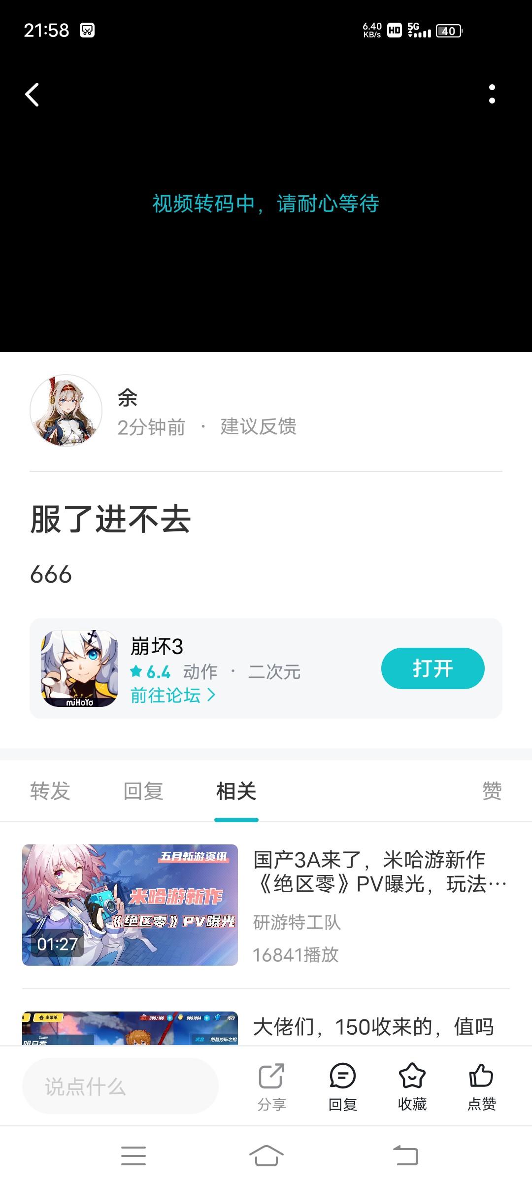 TM玩的好痛苦,游戏好玩,米哈游我也蛮喜欢的,可是,我TM玩到一半打怪结果突然卡主了,然后我第一次没有在意,去写作业了,手机还在那里卡着没动,然后过了两个小时(写作业上头了,写了俩小时。)还TM在卡,然后我就知道了,卡主就退,不等我还是太天真了,半小时,卡了3次,开了3次,不知道为啥,云的,可能是手机,也可能是其他,反正我是真的难受