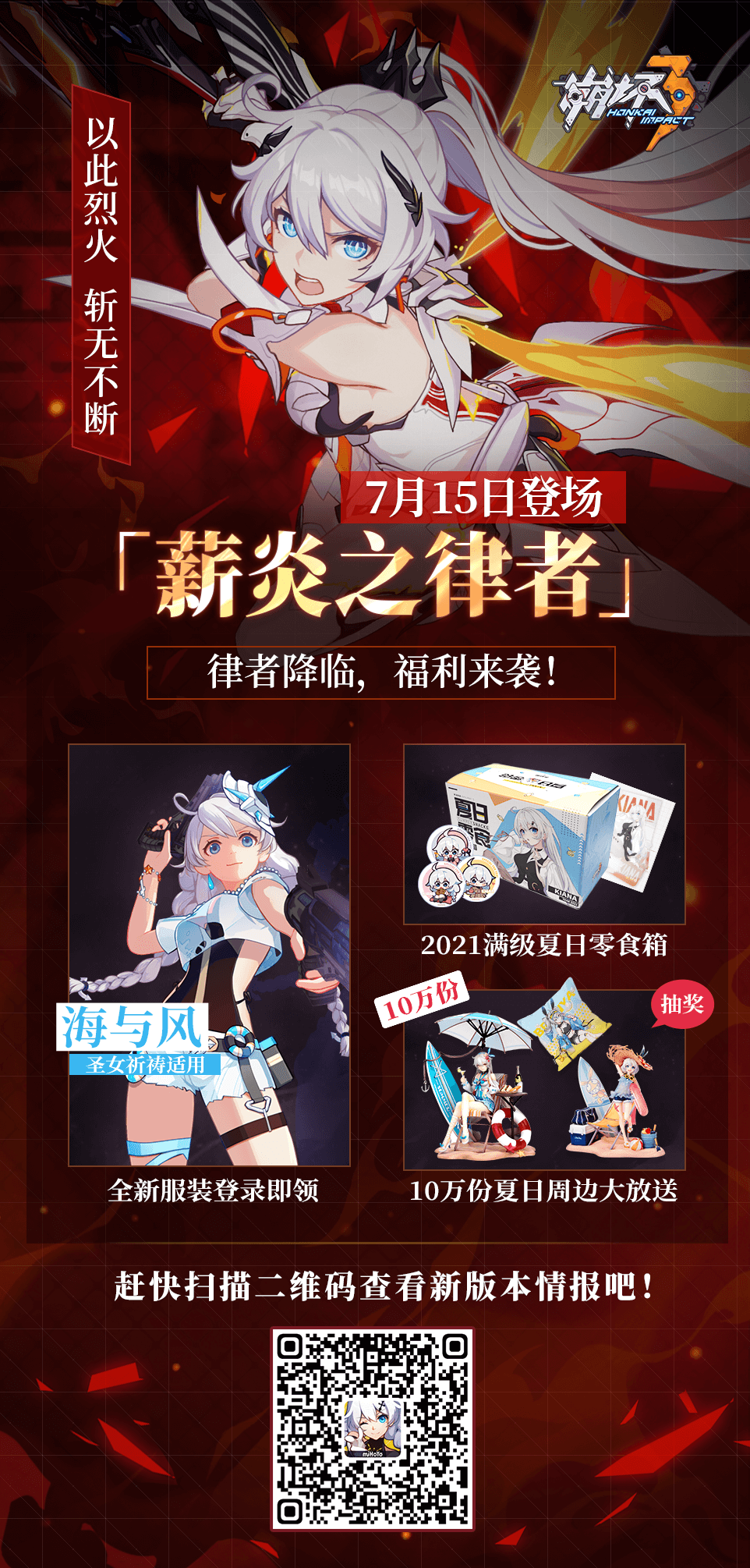 《崩坏3》薪炎之律者降临!登录送琪亚娜夏日服装,还有满级零食箱派送,赶快来看看吧:https://mhyurl.cn/66aVFBA6,现在回归在「传承之火」活动中填写我的邀请码( 262545244)还可领取水晶礼包哦!