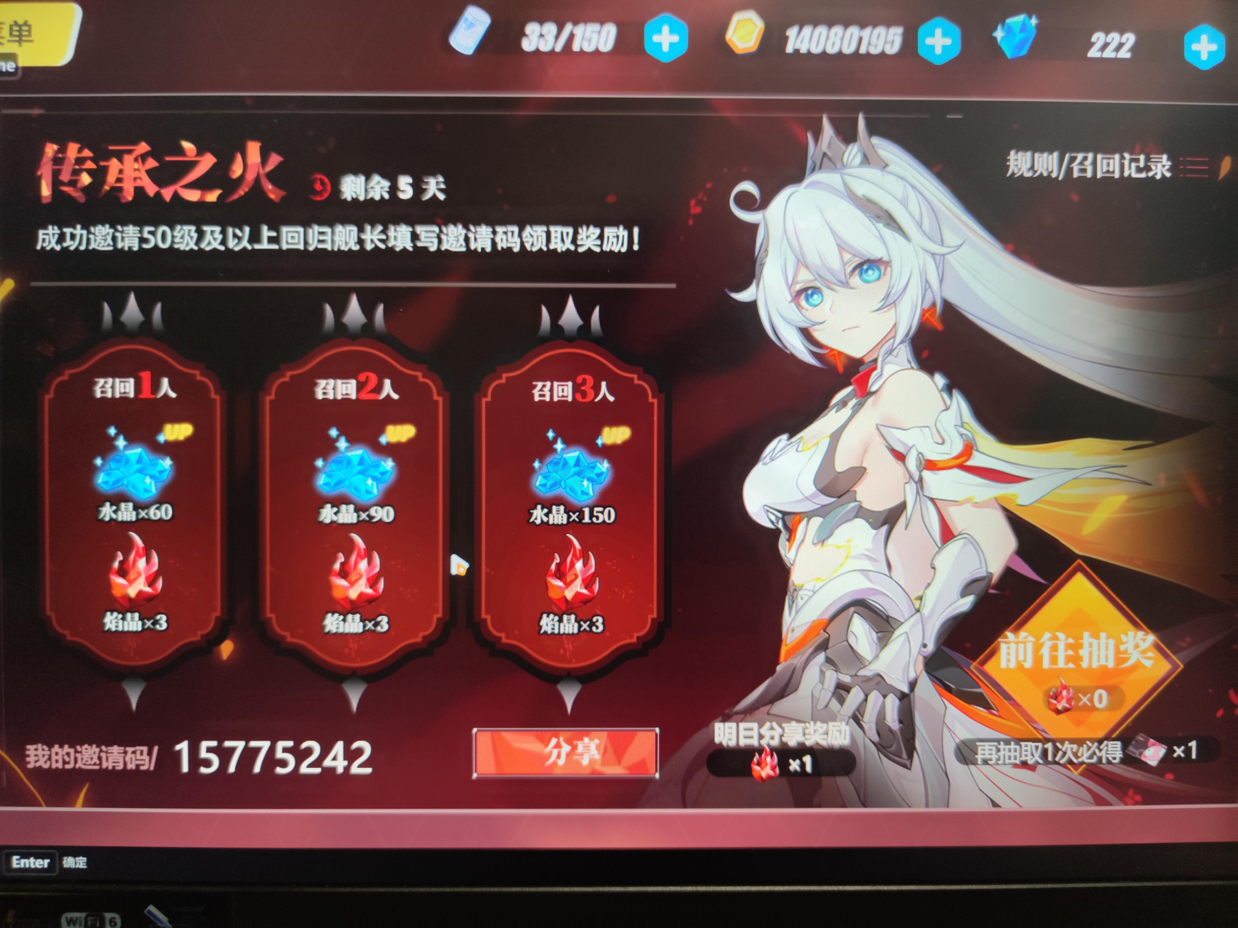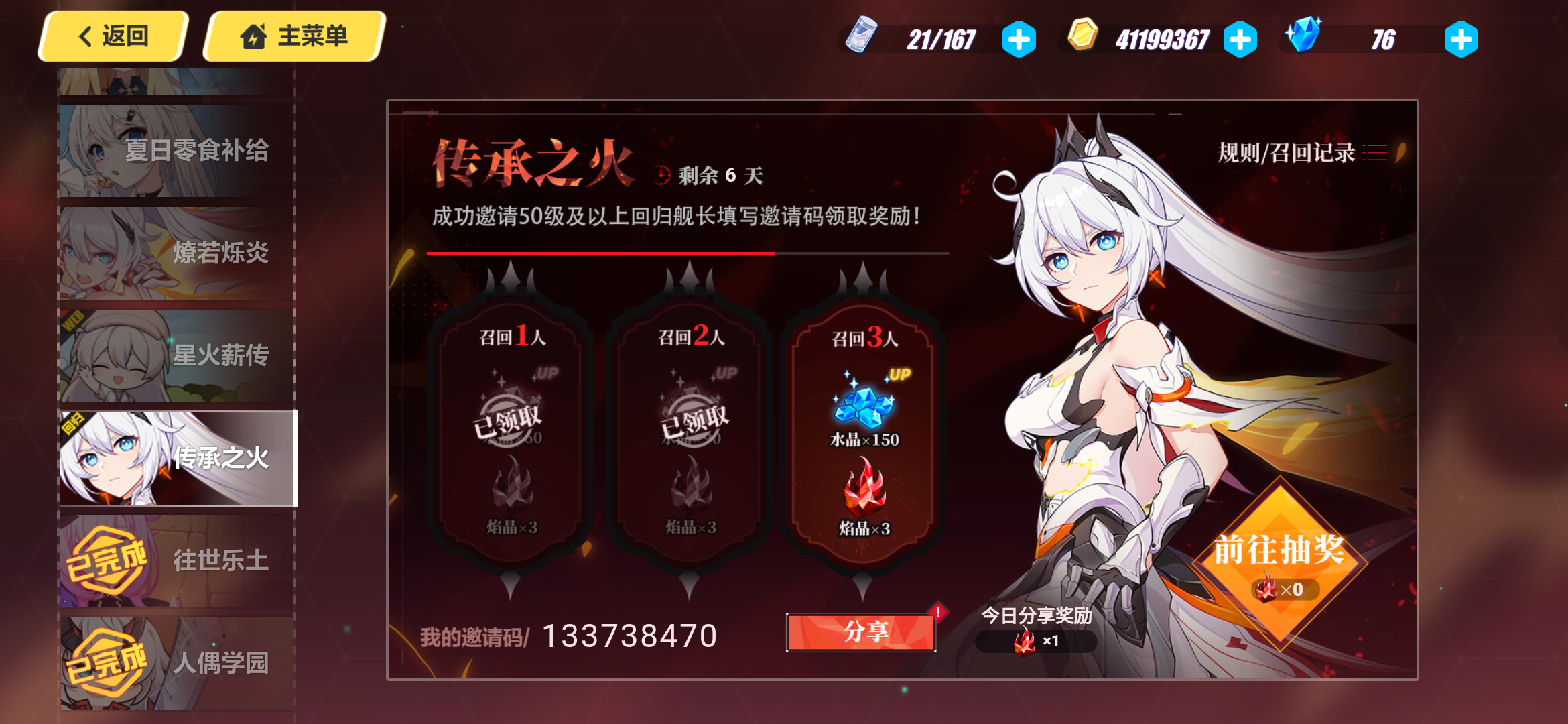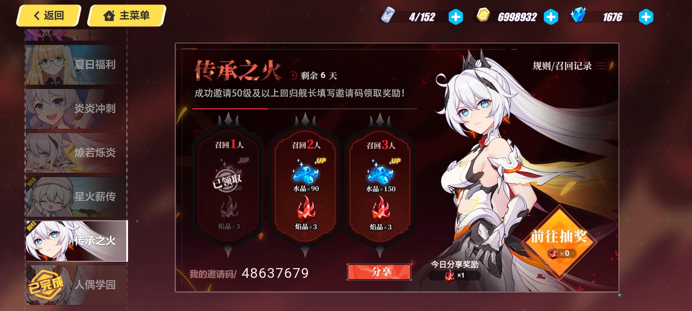 回归玩家邀请码!有需要的可填写邀请码:【8H75M8】回归舰长还可额外领取120水晶!