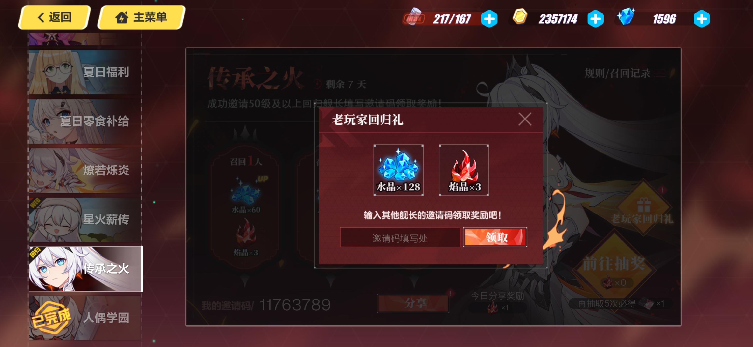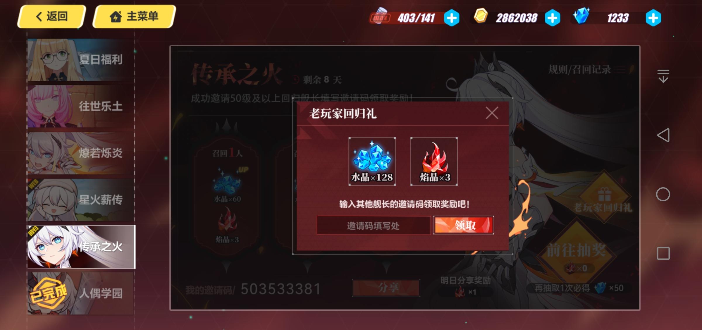 有没有老玩家回归互填一下邀请码的啊
