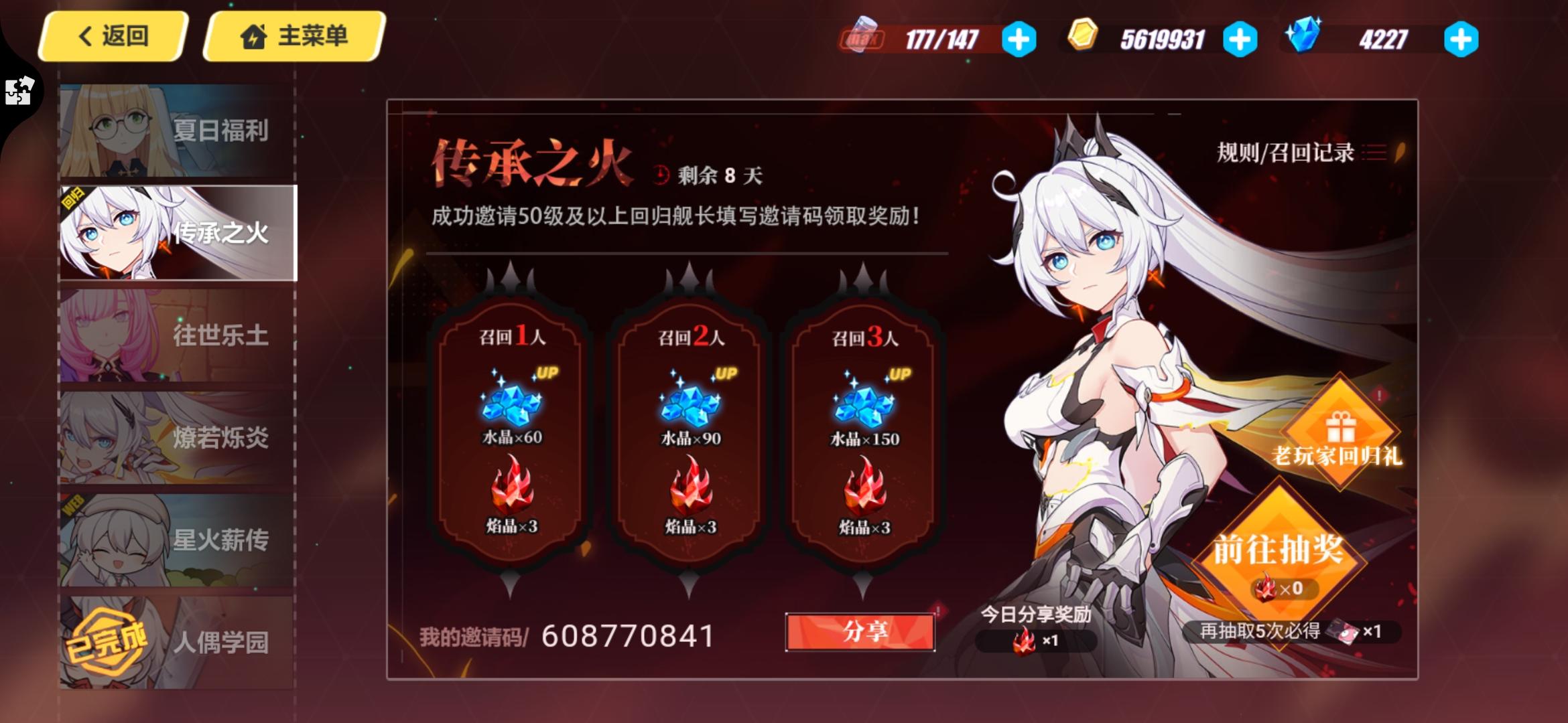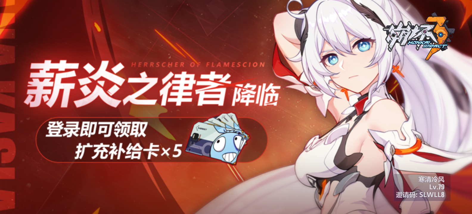 《崩坏3》薪炎之律者降临!登录送琪亚娜夏日服装,还有满级零食箱派送,赶快来看看吧:https://mhyurl.cn/66aVFBA6,现在回归在「传承之火」活动中填写我的邀请码( 47577658)还可领取水晶礼包哦!