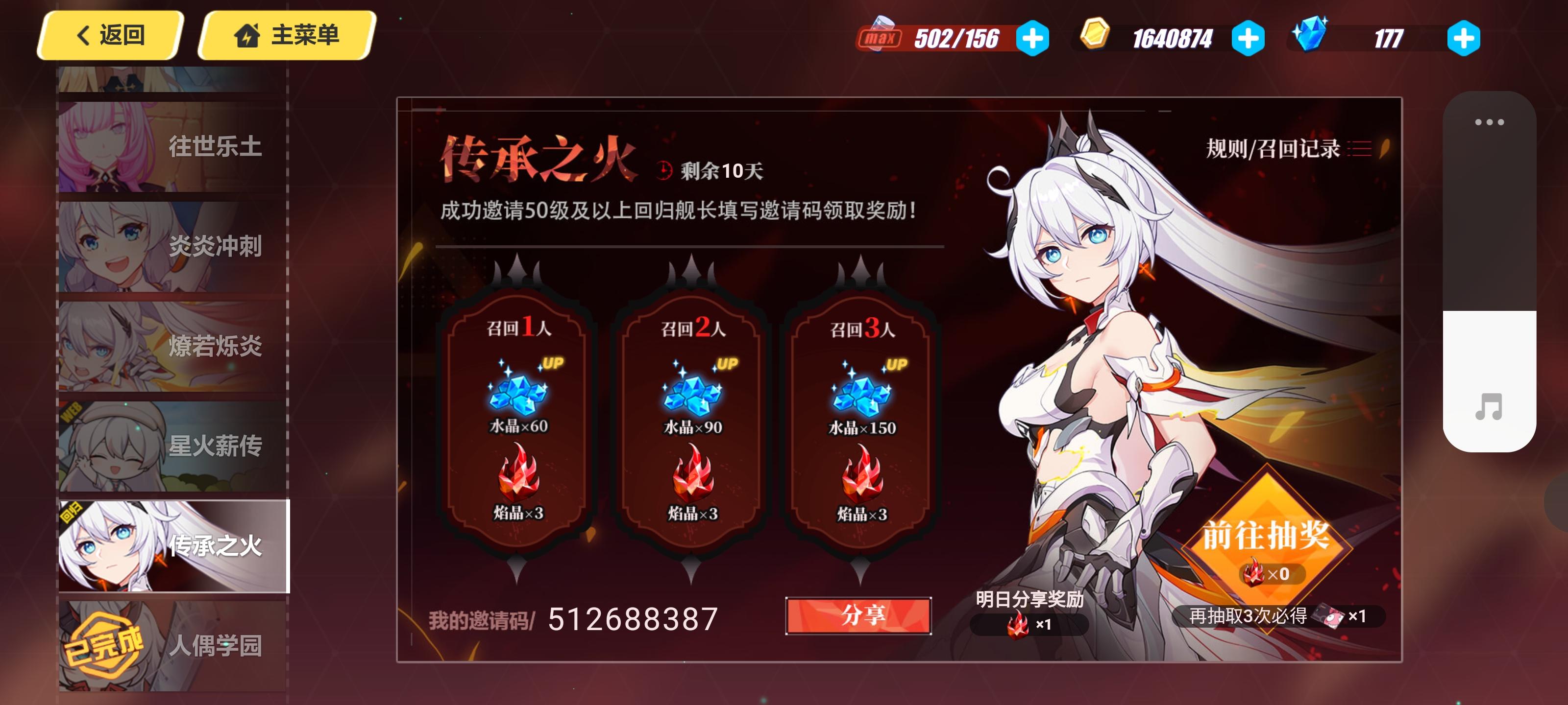 《崩坏3》薪炎之律者降临!登录送琪亚娜夏日服装,还有满级零食箱派送,赶快来看看吧:https://mhyurl.cn/66aVFBA6,现在回归在「传承之火」活动中填写我的邀请码( 62875404)还可领取水晶礼包哦!