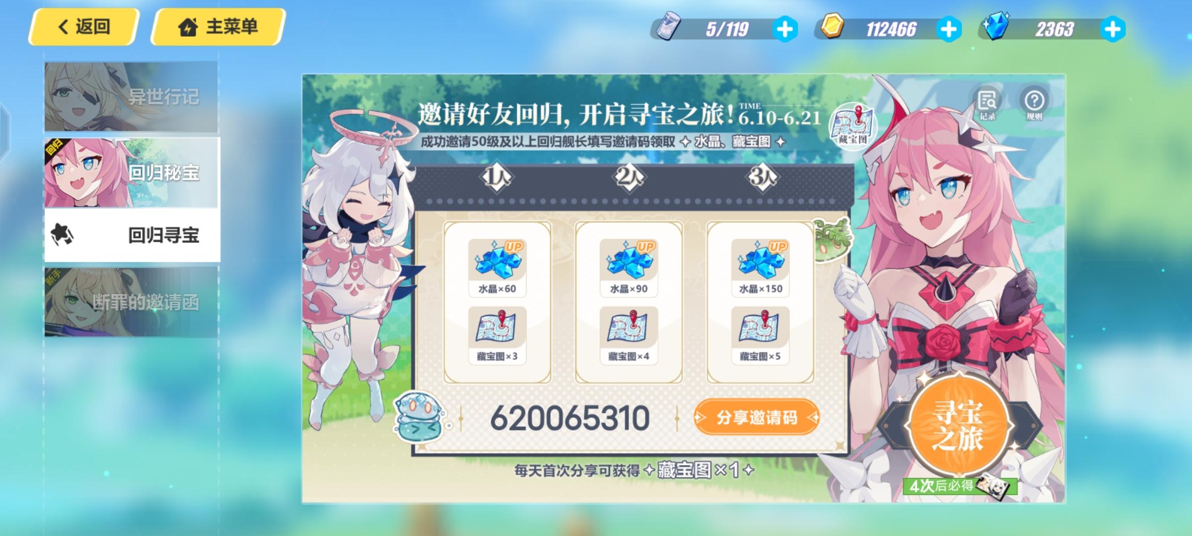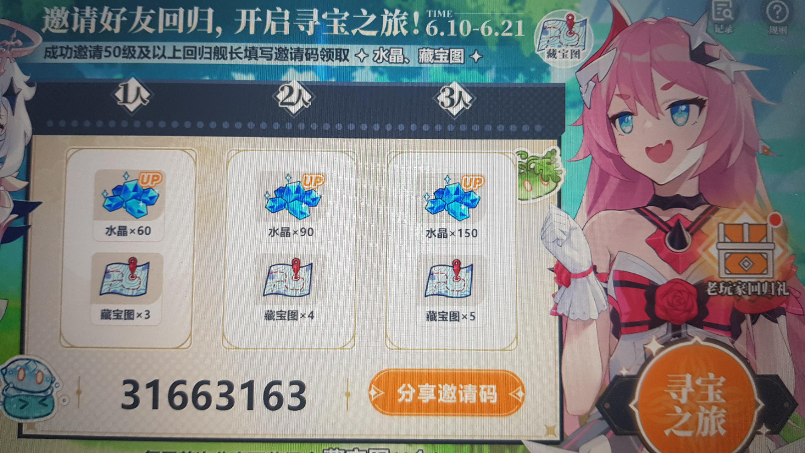 新玩家、回归玩家填写我的邀请码533824965还可额外领取水晶等福利!