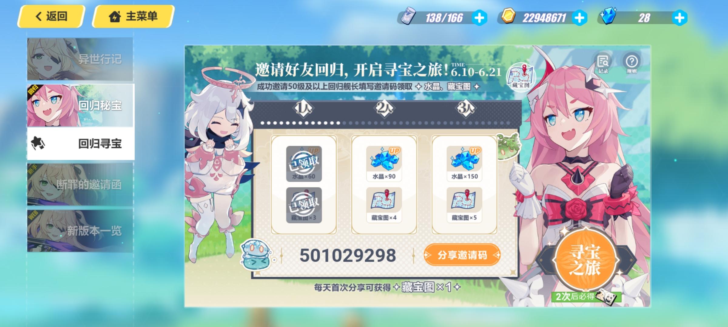 原神崩三联动的新活动就很nice!!!不知道你们注意到没,战场宝库每周可兑换的女武神碎片变多了,拿勿忘举例,以前一周9个,现在一周25个,这一点官方很棒,减少了我们漫长的晋升之路!!😘😘😘