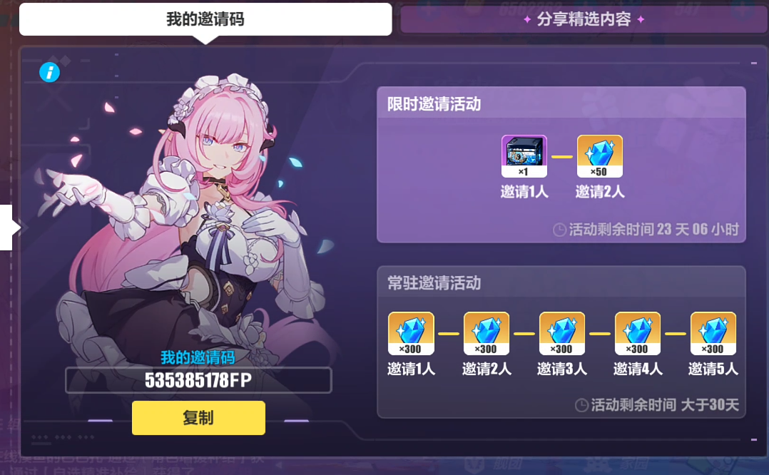 《崩坏3》 送你一份周年航程礼盒赶快打开吧!https://webstatic.mihoyo.com/bh3/event/6th_anniversary/share.html?sign=PA84OZ4J1P