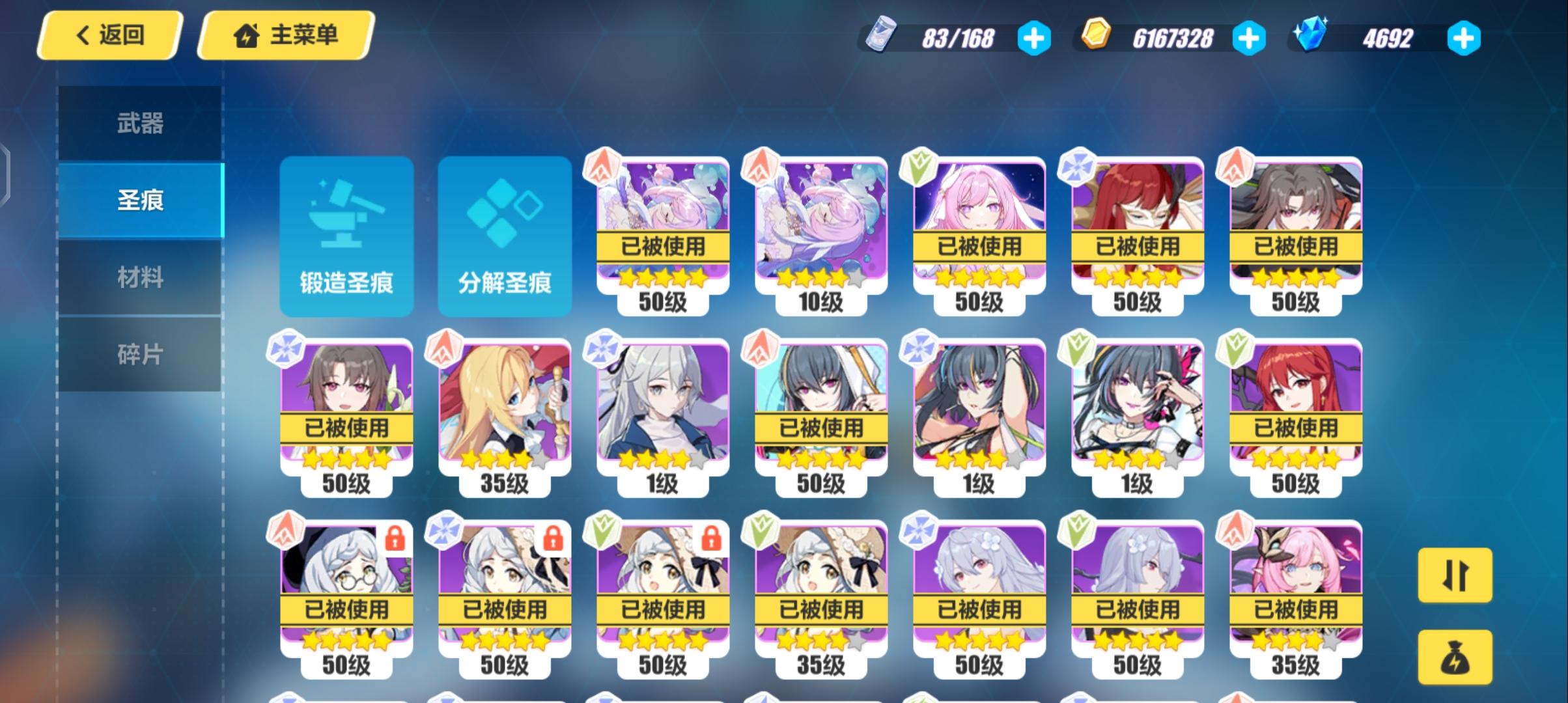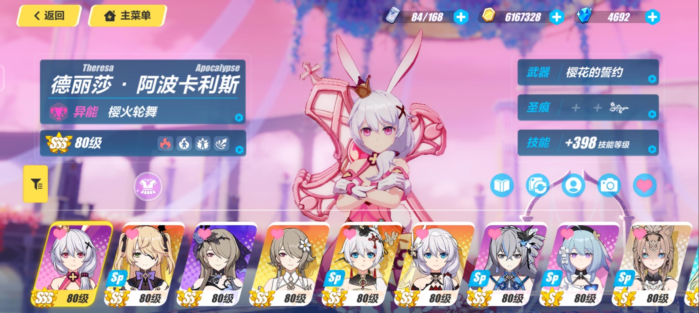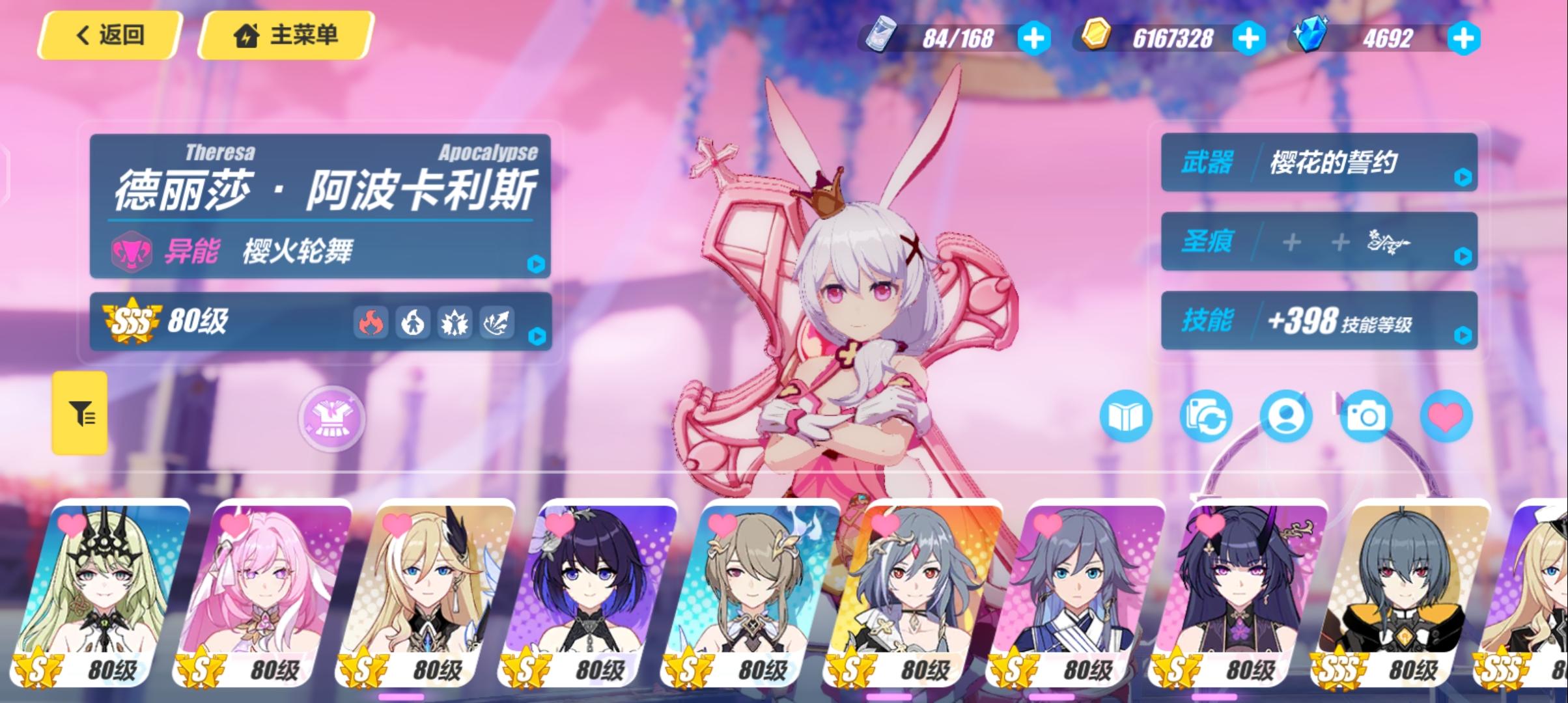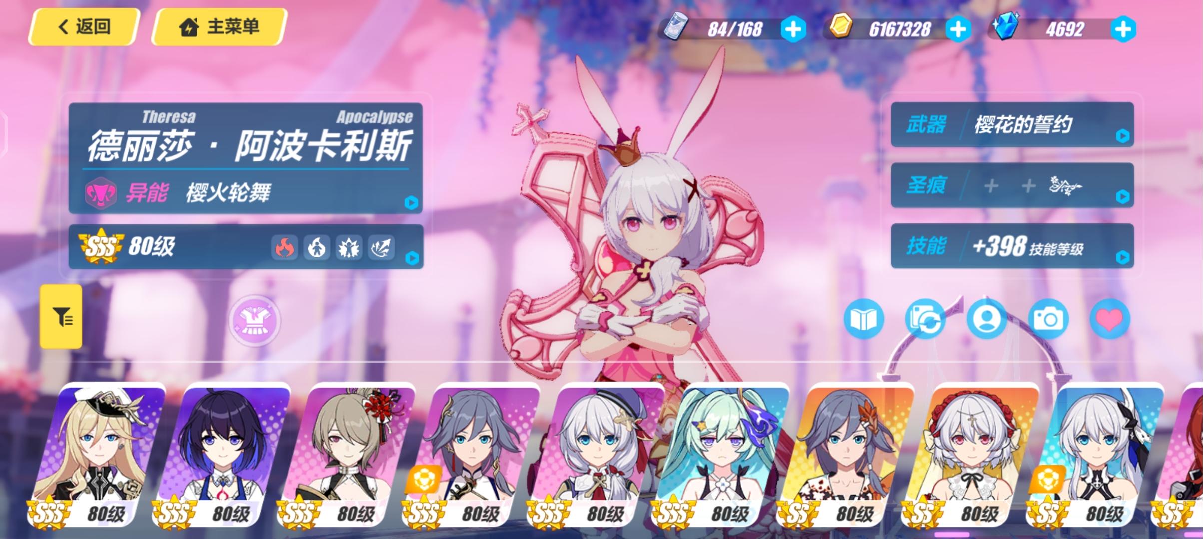 问一下大佬们,我现在有阿波尼亚和圣痕上 要补个武器吗?她是我唯一的雷队的c。还是说继续攒着抽李奶奶的装备?冰队人律毕业,猫猫有武器。还有就是我现在爱莉S3 到时候是选黑希还是补爱莉86级 现在有6600水😺😺