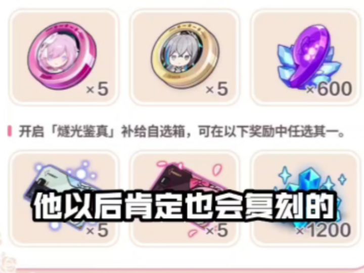 不是很明白,累登这个宝箱可以选五抽角色补给或者五抽装备补给或1200水晶第一个问题~角色补给卡是不是就是拿来抽新爱莉的那个抽卡资源?第二个问题~如果是的话,已知280水晶为一抽,280×5=1400,1400大于1200,为何不直接选五抽而要选水晶?萌新,问的有点弱智了,求大佬指点!!!#崩坏3 #崩坏3第二部 #崩坏3萌新攻略 #崩坏3八周年 #崩坏三