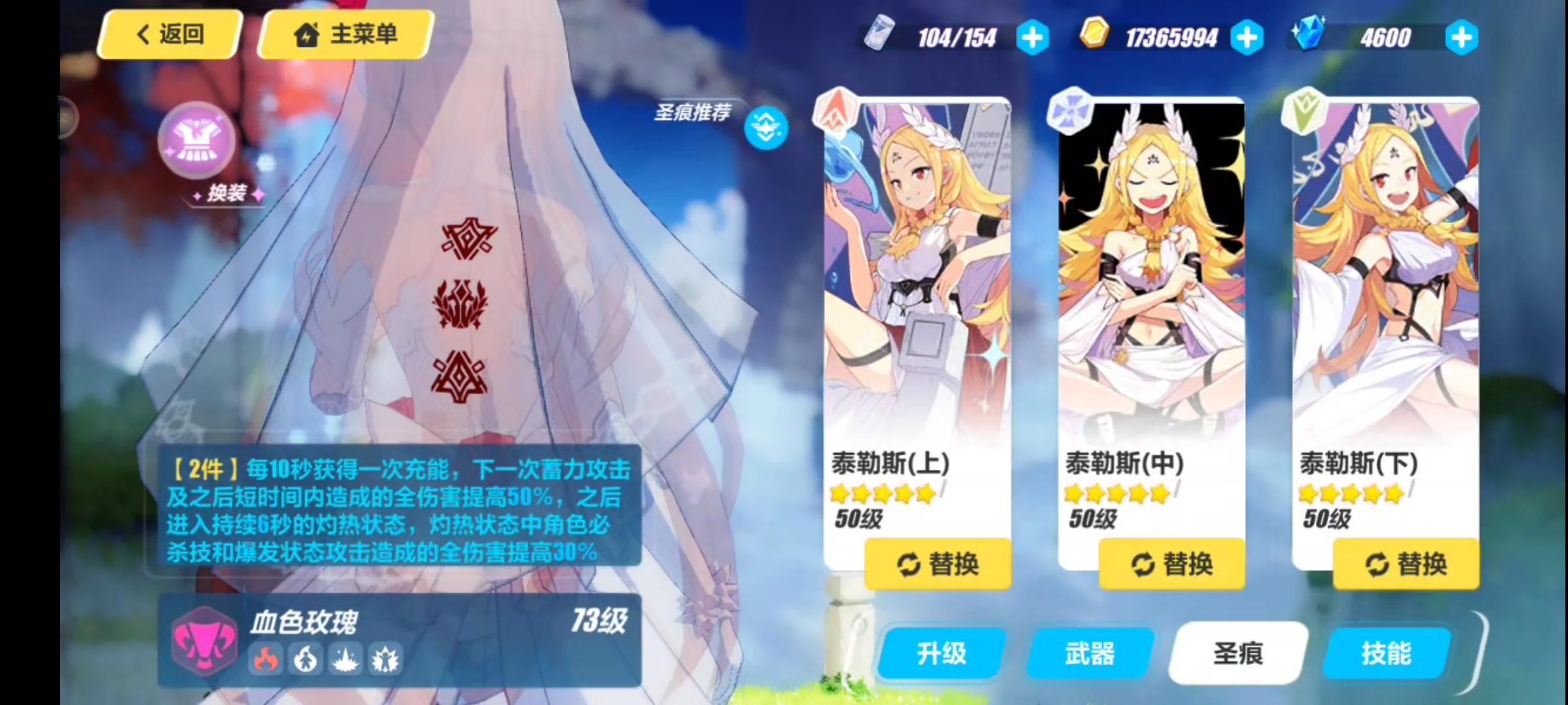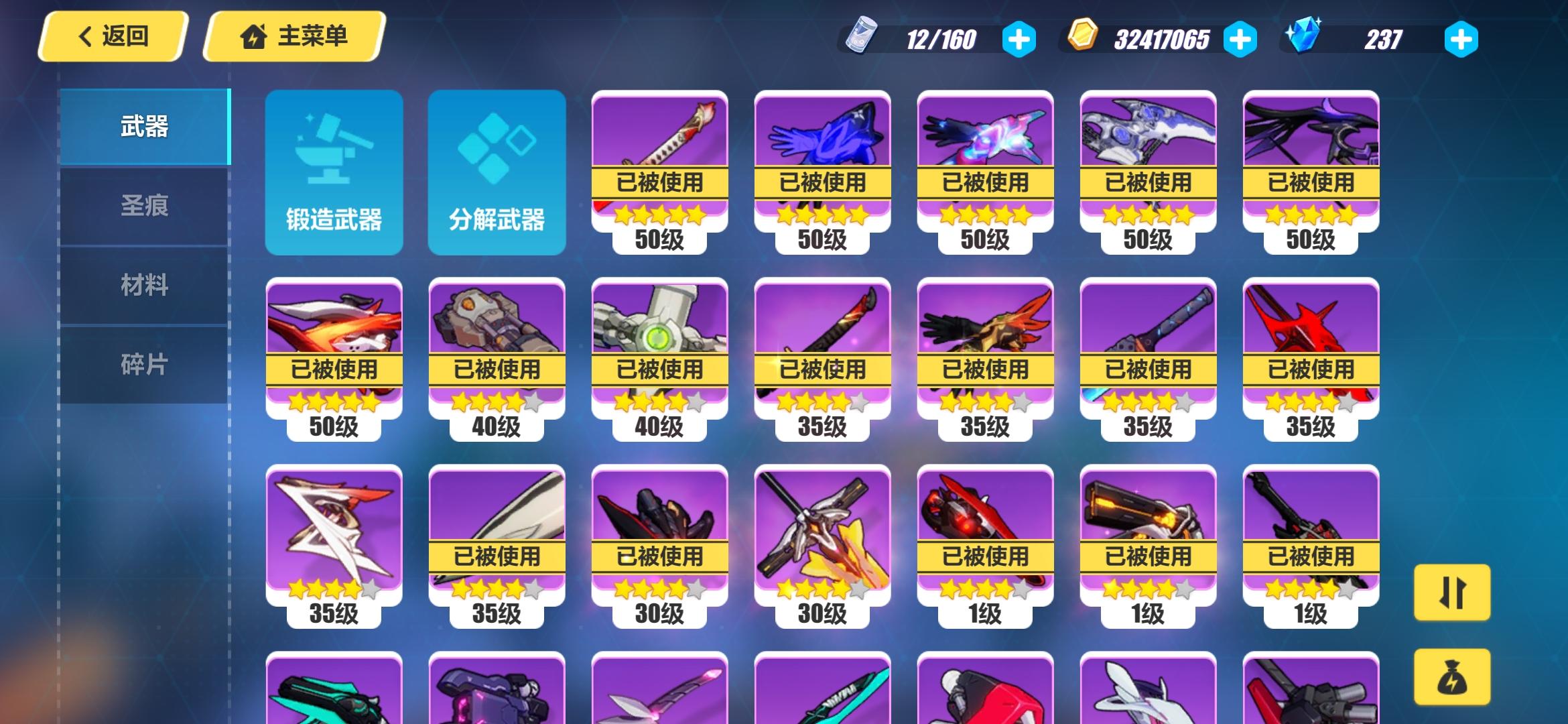大佬们,我才回来玩一个多月,游戏理解跟不上了,这是我目前的装备什么的,抽出来多的武器我融了,目前刷出来一个血舞,要不要换啊。我目前是在把冰伤跟火伤拉满。火的差很多,目前都是在用猫猫,跟黑漆漆的那个弓给薪炎辅助