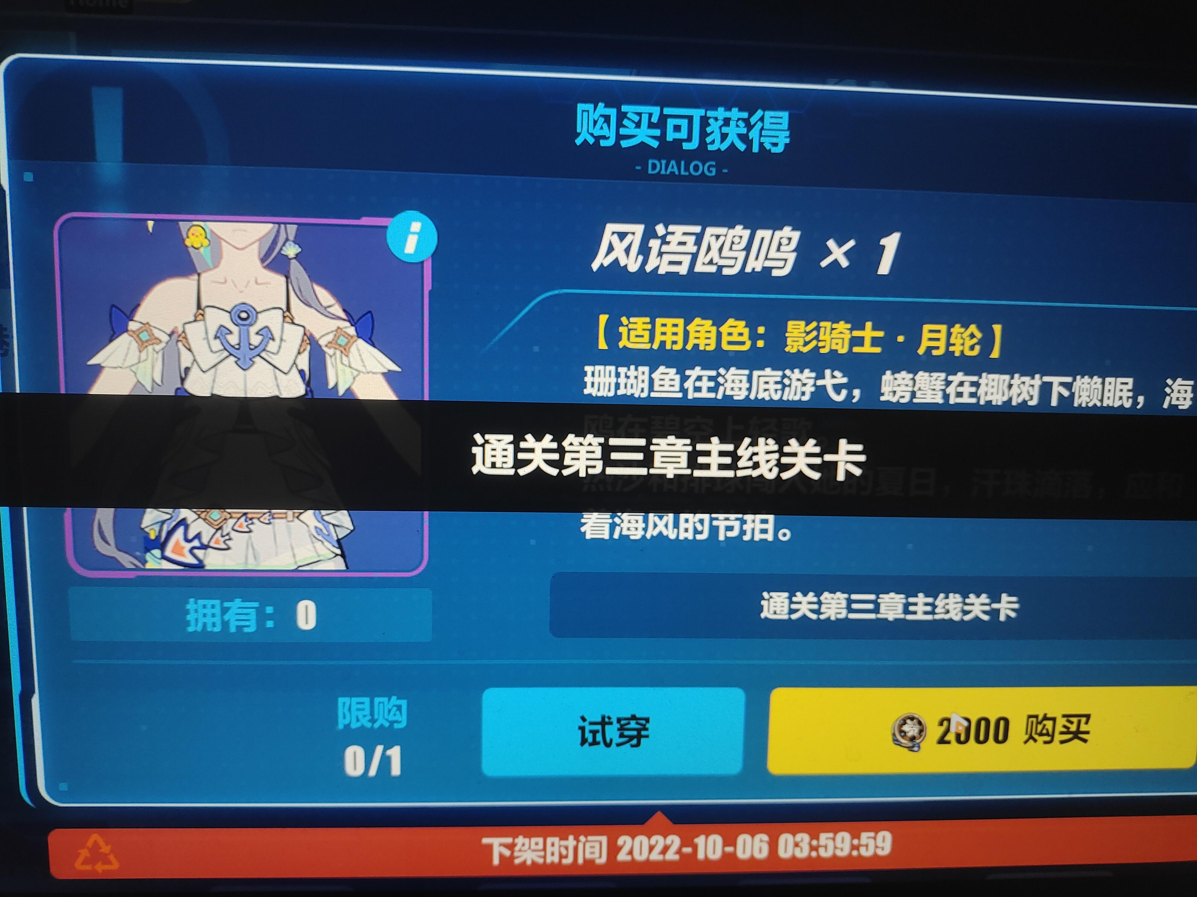 刚回归服装要完成主线第三章。这个第三章是那一章啊?