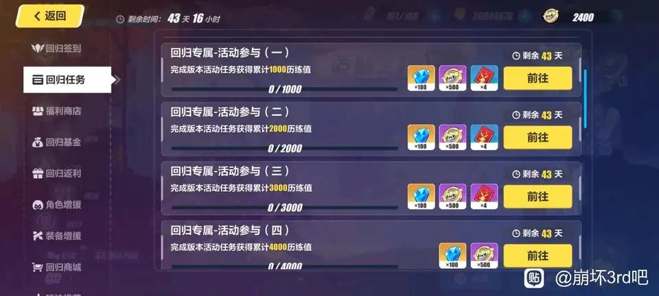 回归任务的版本活动历练值是什么,要打哪里😐