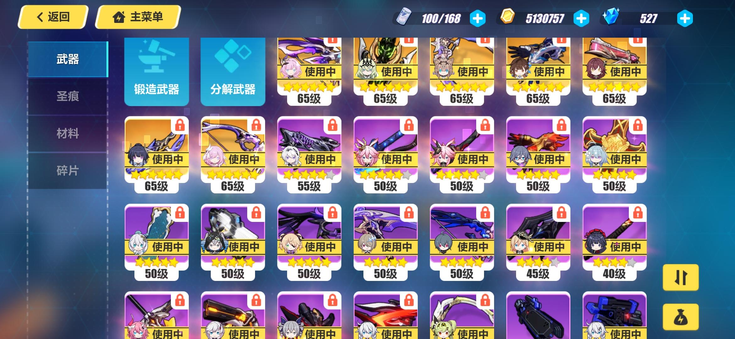 80天左右萌新,第一排毕业,第二排爱莉差武器,其他的白板遇到物理深渊,水晶都拿不全
