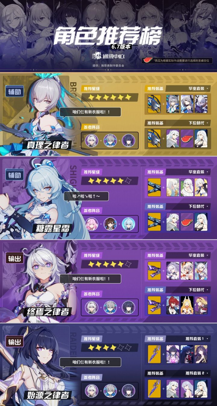 角色推荐|6.7版本角色推荐榜