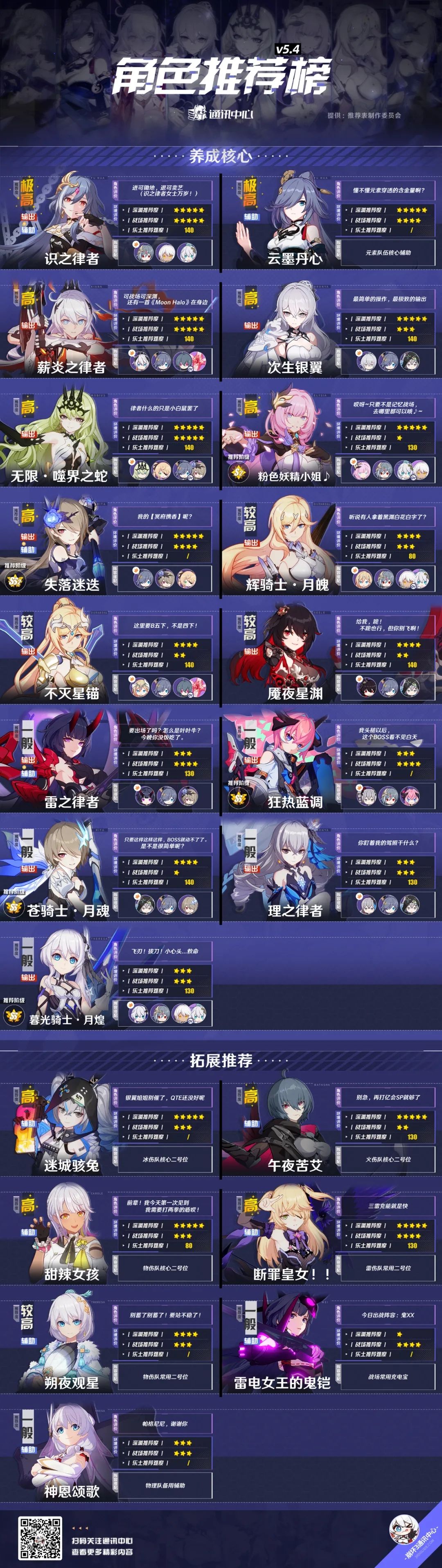 【崩坏3通讯中心】5.4角色推荐表|吊销驾照,然后变得更强