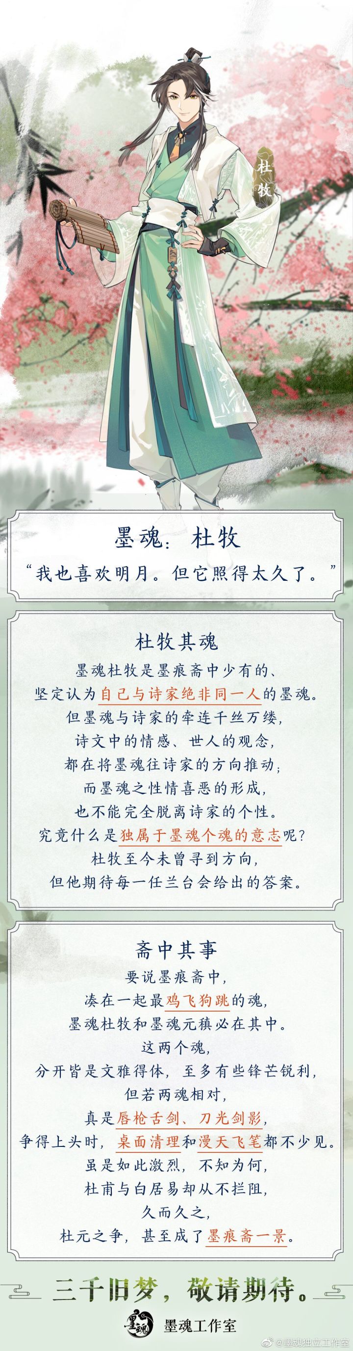 同志们,公告里说杜牧和婉儿都会出现在蓬莱,手动喂萝卜可以先把其他地方逛完,最后点蓬莱。我这两天都是这样做的,今天就遇到了牧先生,16根萝卜解决战斗了,真·抠之兰台。(更正:我突然怀疑,公告里的“蓬莱”可能指的是所有地区,寻踪左上角也有个蓬莱,不是指那个逛五次的“蓬莱”的......我这只是单纯凑巧罢了......)