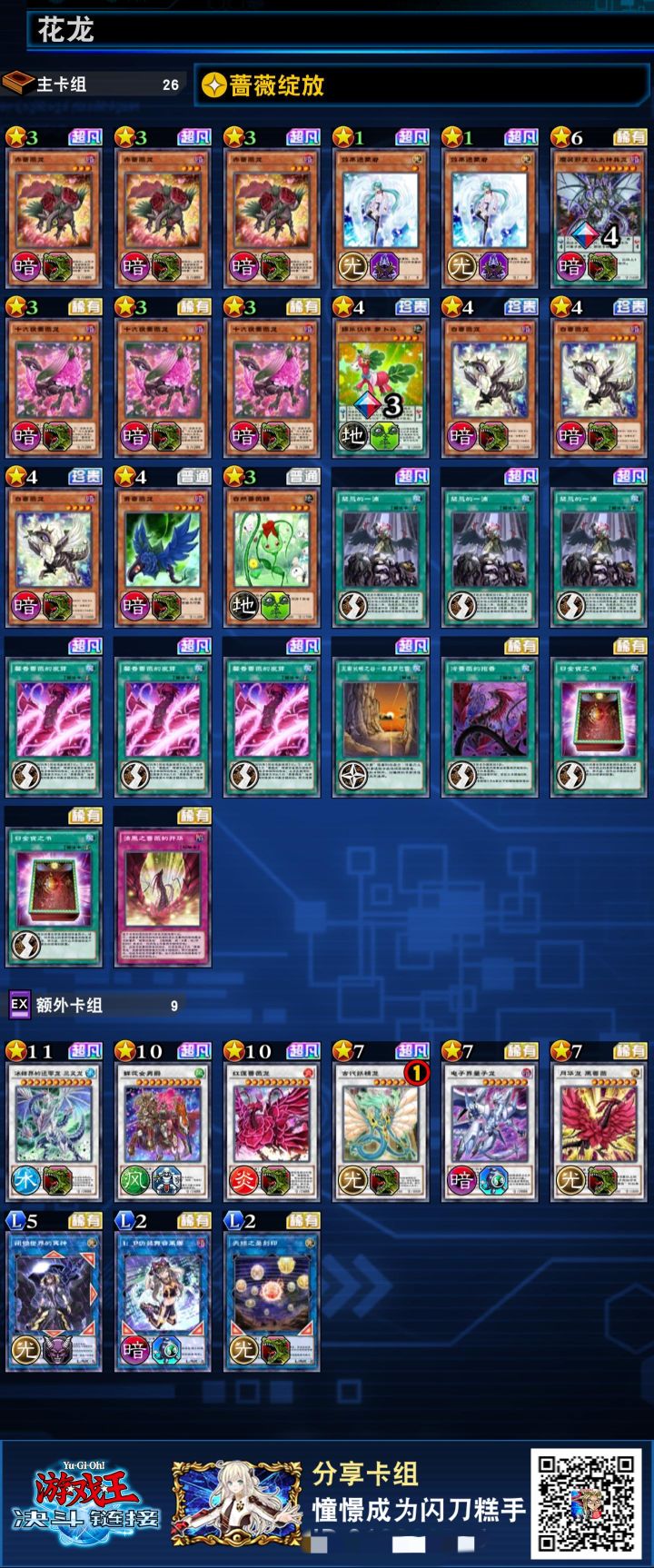 发现这边很少有主流卡组推荐了,虽然游戏里也能找到,但是一些萌新估计还是很懵,所以在这里趁着国庆给大家搞个构筑推荐。截止10.2凌晨整点185套上王卡组排列的环境主流(数据来源贴吧用户苍穹龙主):T1 黑魔导 电子龙 花龙T2 abc 抒情歌鸲T3 时花 龙拳 炎兽T4 鬼计 水产 霸紫 地均ftk本次介绍T1花龙的一种封锁系统构筑。自然蔷薇鞭花龙自然蔷薇鞭:只要这张卡在场上以表侧表