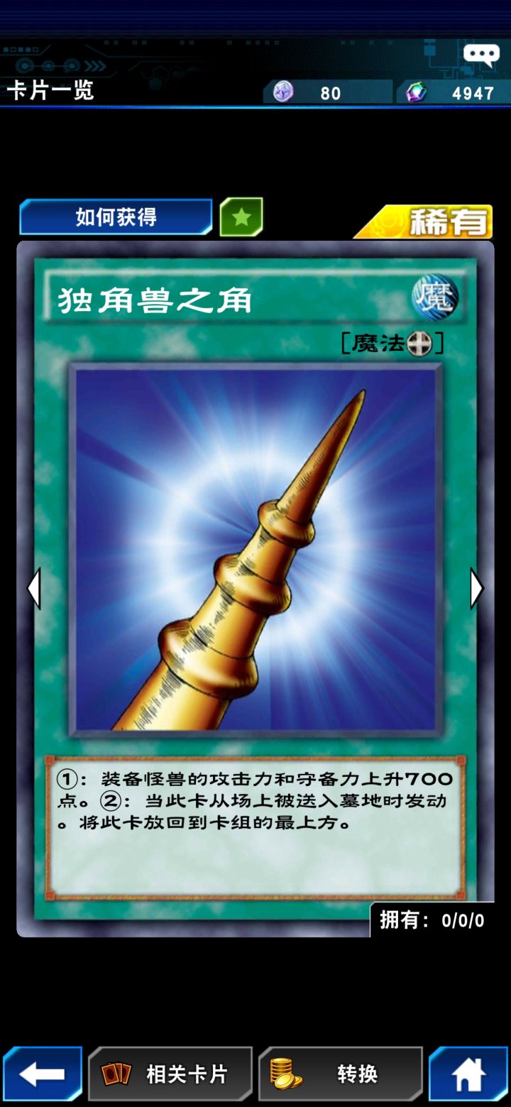 有五帝龙给的那张独角兽之角可以加入去掉个草雉剑或者加两张,独角兽的角和灵魂装备差不多,去墓地回牌组最上方,为了破恶魔召唤保险用,别的时候可以不装备,就不会不能抽卡了,700攻配上天狗正好多100打死恶魔召唤,天狗大血下回合对方无法攻击,而且阿修罗配上青蛙加羁绊再加上独角兽之角,也正好比恶魔召唤多100打点,有保障。