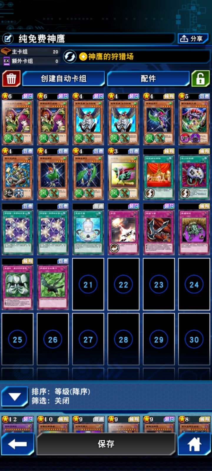 免费的神鹰卡组。是我在别人基础下组的。适合随便玩玩的