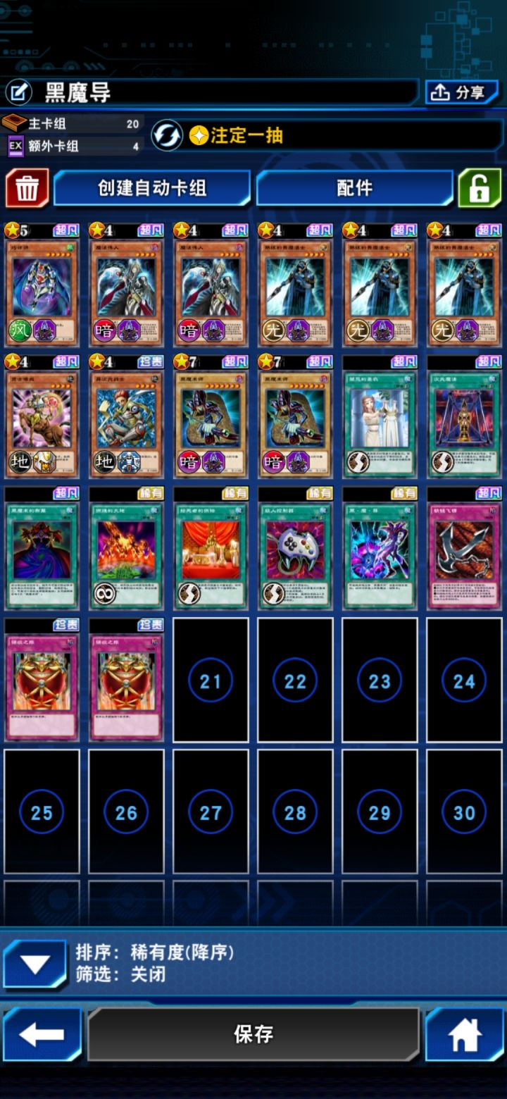 好家伙,今天怪兽之门刚刚更新了黑魔导出来,我立马满怀信心去挑战王样最忠实的仆人,结果给劳资硬是打出了痛苦面具,不过最后还是被优秀的我击败了,嘿嘿。下面发下卡组,两个卡组都是百分百过,不过满足不了三星要求,没办法。只要具备核心条件,还有其他卡组也能刷,比如能直接攻击对面的怪兽(核心条件:神圣守护+薄幸的少女)