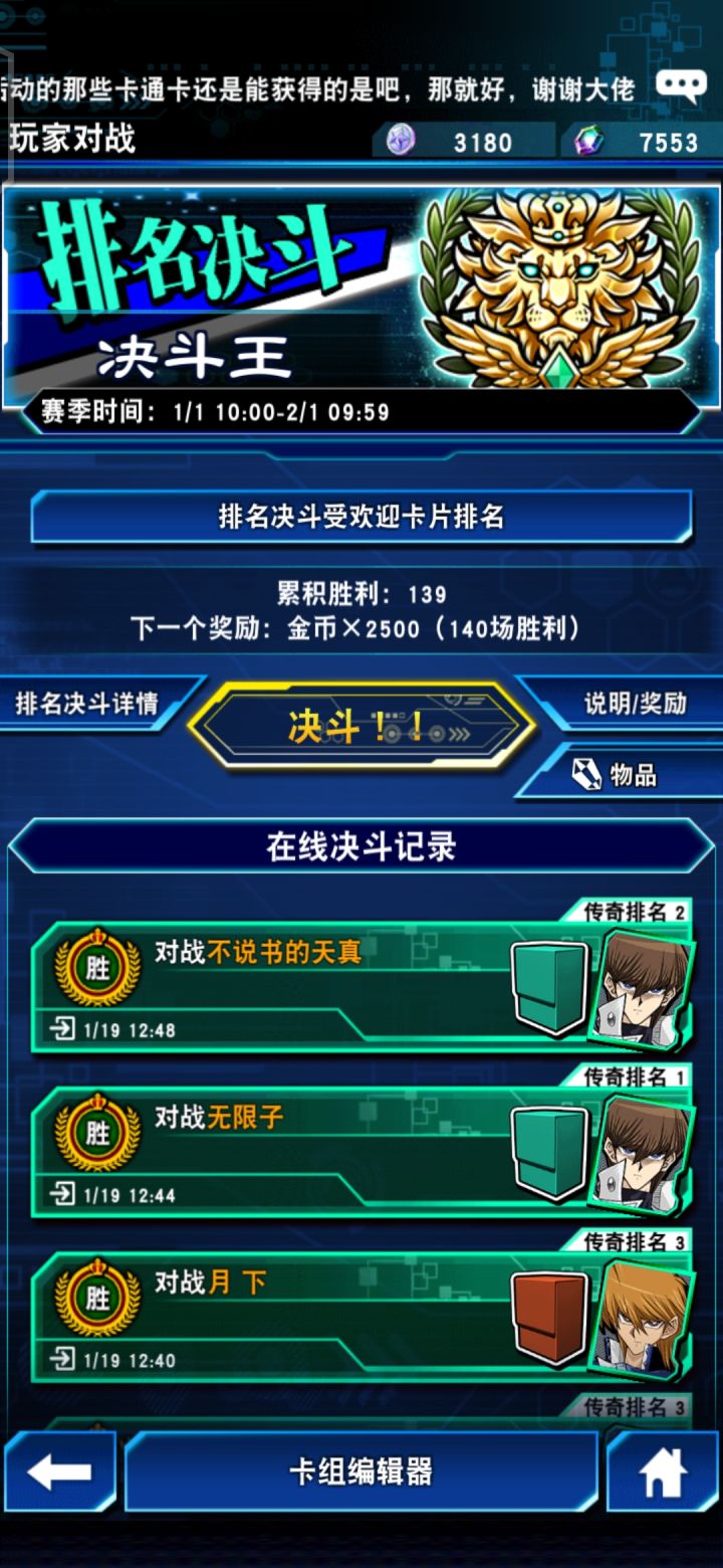 玩过一段时间国际服,本身实力很弱啦,但现在这种远古环境还是可以混一混的战绩图,额,青铜,10胜8卡组只有构筑,三个新手构筑,加一个500钻的龙构筑。现阶段新手有这些就够了。如果以后打算玩仪式,那就抽音速鸟。如果觉得以后需要融合之门,还有那个黄黄的栗子球,抽到这些就别抽了,需要三张的话就,抽到就重置再抽。所以攻略总结,对现阶段卡盒没有需求的就存着钻,等后面你要组的卡组出来再抽。并且组一套