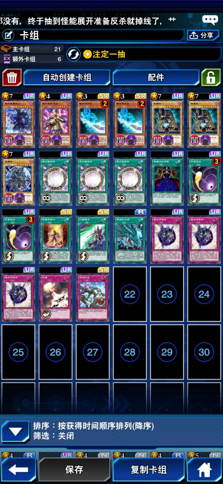 我是来自LYW战队的小云 今天打比赛先是遇到了黑羽 被我用天谴和王者的看破无效了,然后就是魔女术 抓着对面拉2800大姐的除外就赢了 最后是被白龙杀了 止步于16强 关于黑魔导或者别的卡组有问题都可以来提问 看到了就会回复卡组截图如下