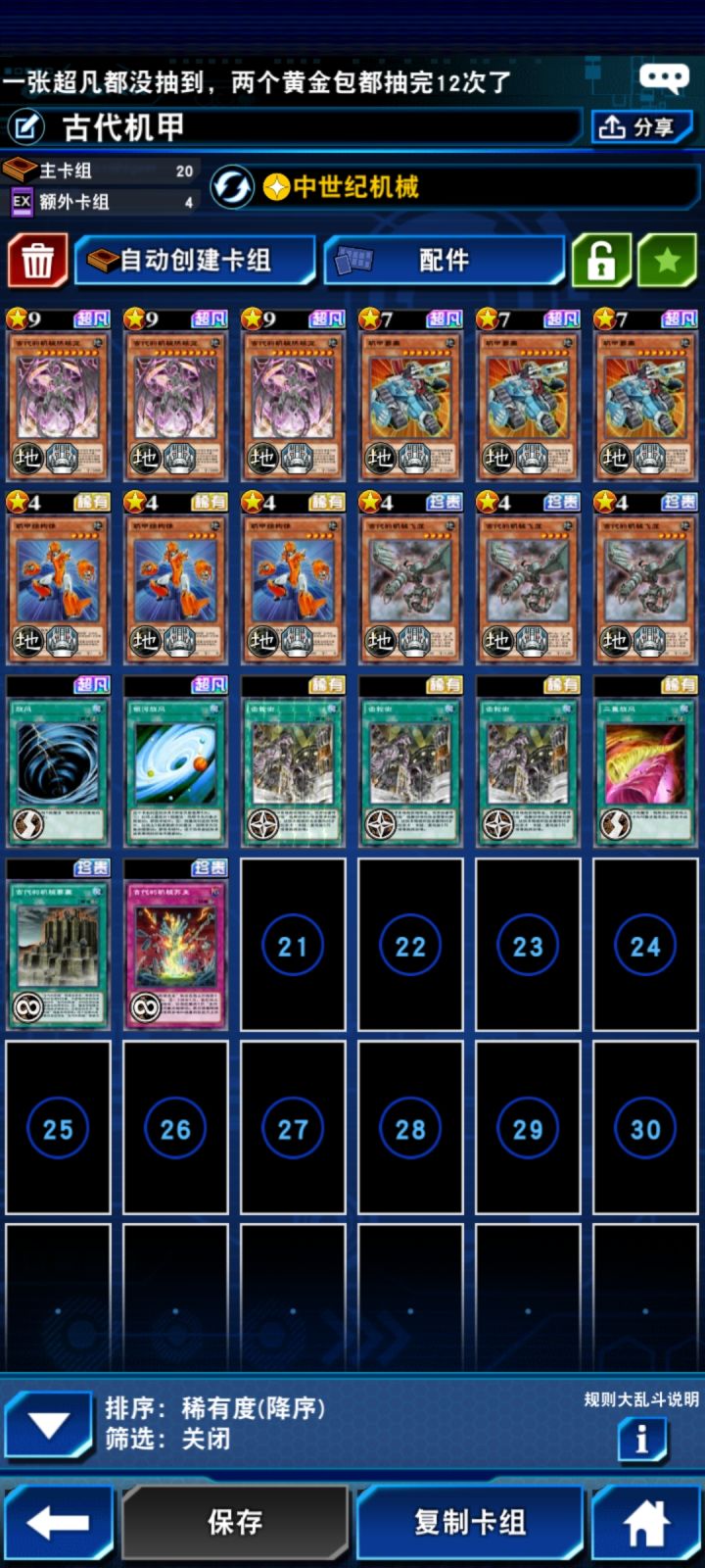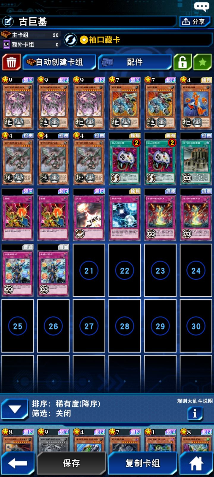 机甲古巨基雷破低配版过深代替一族,亲测还可以,机甲只有两张就用风筝机人代替了