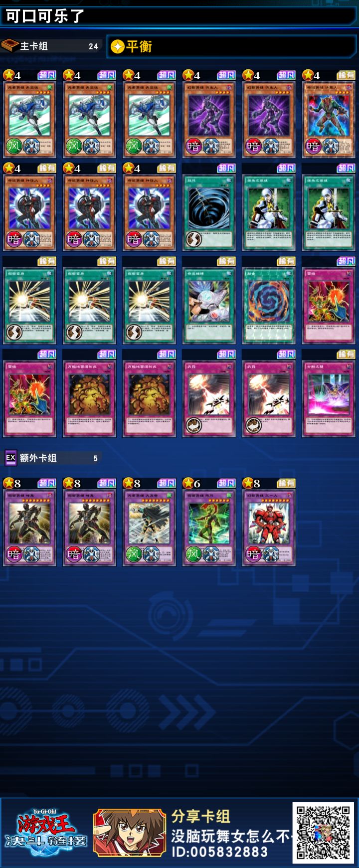 英雄月中上王卡组分享 带抹杀是为了逮电池人 现在可以考虑把抹杀换成系统崩溃抓古代机械