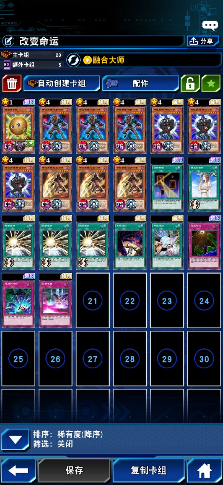 大家好,我是野蛮人,作为一个资深OCG英雄玩家,这次命运英雄卡组一出来我就抽满了三暗鬼三变身、拿完了迷宫卡,日夜在探索各种命运英雄构筑,然而一直都感觉强度不尽如人意。这是我一开始组的一套命运英雄卡组,凭经验组的,实战掉分很快,一晚上就回传一了。于是我开始反思为什么OCG排位赛上都有一战之力的命运英雄竟然这么颓,排除没出的强力卡不看,英雄卡组最大的优势是什么呢?没错,是资源运转快,仿生可以堆墓可